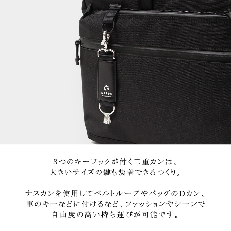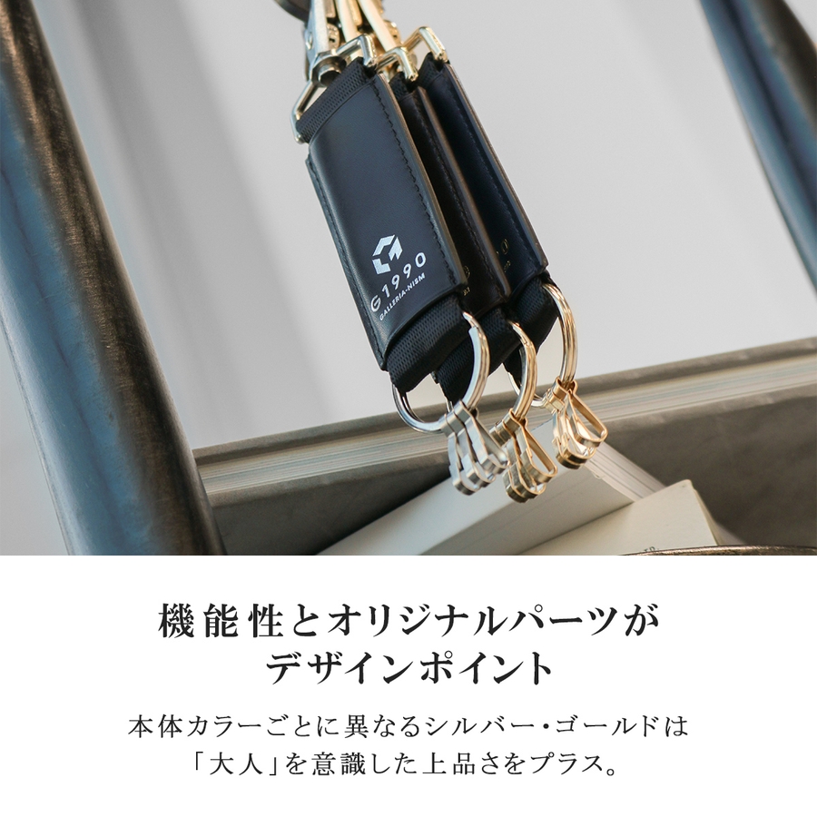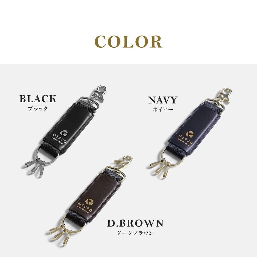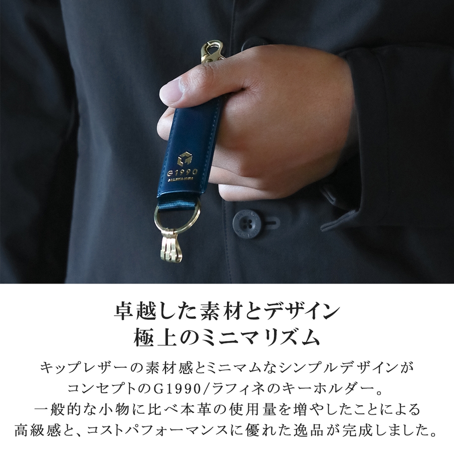 キップレザーを贅沢に使用したワンランク上の佇まいが魅力の『G1990 Raffine ラフィネ』のキーホルダー。フック付きのため、ベルトループやバッグのDカンなど様々なところに自由に掛けて持ち運べます。本体にはキメの細かいしなやかで上品な質感のフレンチキップレザーを使用しています。