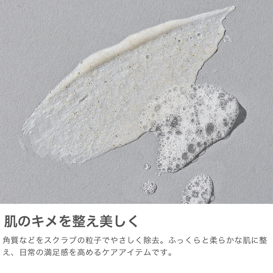 水、軽石、ココアンホジ酢酸二ナトリウム、ココイルメチルタウリンナトリウム、アクリレーツコポリマー、塩化ナトリウム、香料、ココベタイン、エチルヘキシルグリセリン、カプリリルグリコール、ラウリルグルコシド、微結晶セルロース、ヘキシレングリコール、EDTA-2Na、アルコール、水酸化カリウム、プルヌスアルメニアカ(アプリコット)核油、アルガニアスピノサ核油、ヴィティスヴィニフェラ(ブドウ)種子油、シモンドシアシネンシス(ホホバ)種子油、ブチレングリコール、プロパンジオール、ラベンダー花水、ムラサキバレンギクエキス、ヤグルマギク花エキス、カミツレ花/葉エキス、サルビアスクラレア(クラリ)エキスヒヤシンスエキス、1,2-ヘキサンジオール、チャ葉エキス、グリセリン、クロッカスサティバス花エキス、ダマスクバラ花エキス、マデカッソシド、シャクヤク根エキス、ツボクサエキス、アシアチコシド、マデカッシン酸、アシアチコ酸