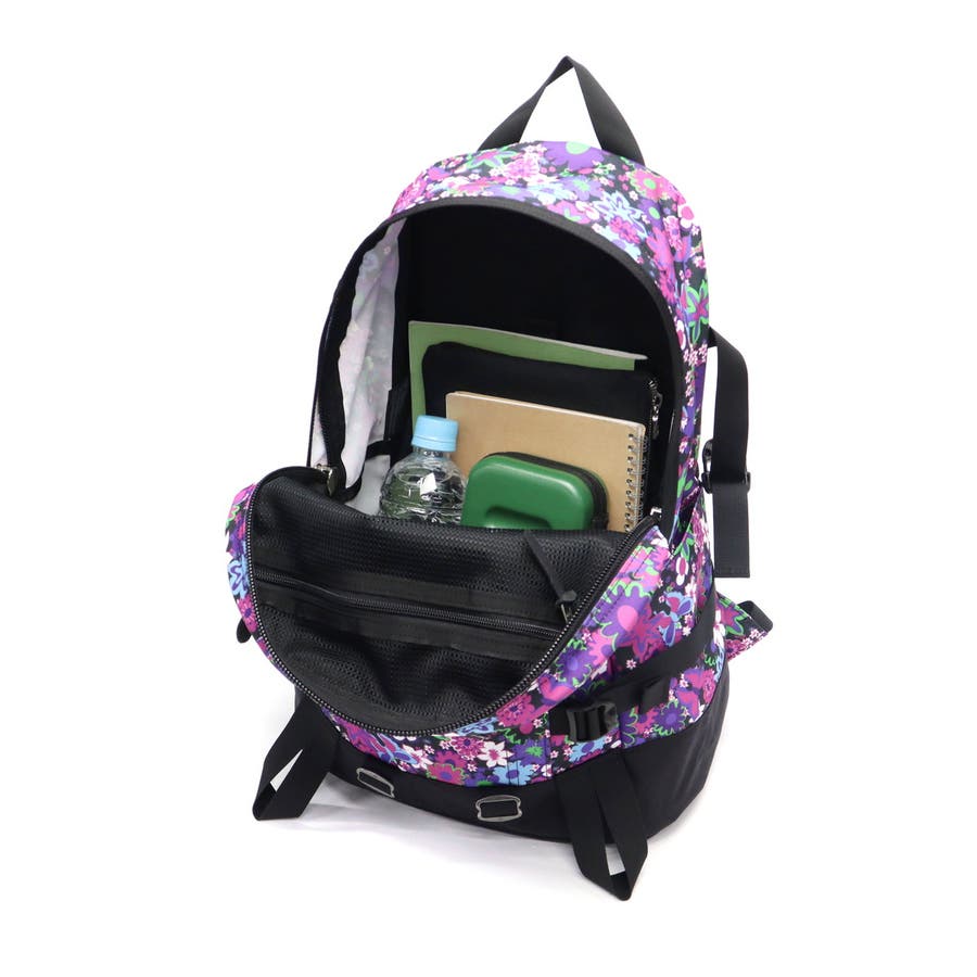 トレイルからタウンユースまで幅広く活躍する「オールデイ」。華やかな花柄が目を引くデザインで、クラシックな見た目に反し、現代的な機能性も充実。A4サイズがすっきり収まり、豊富なポケットによる優れた収納力も魅力です。