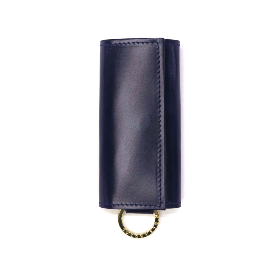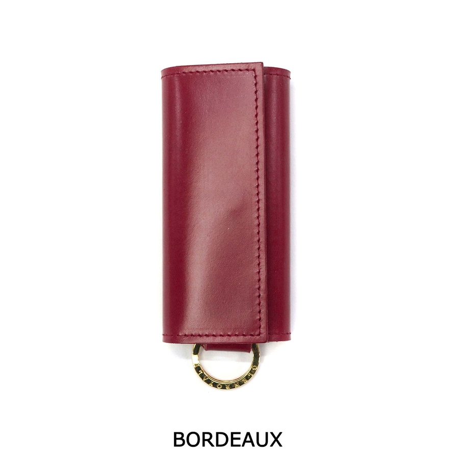 スクエア型のスリムな形が手にフィットし、使い勝手の良い小振りなサイズ感の三つ折りキーケース。外側のリングには大きめの鍵が取り付け可能で、外して単体でキーリングとしても使用したり、用途に合わせて使い分けができる便利な造りに。スナップボタンが表から見えないミニマルデザインで、オンオフ問わず使いやすいルックスに仕上がっております。