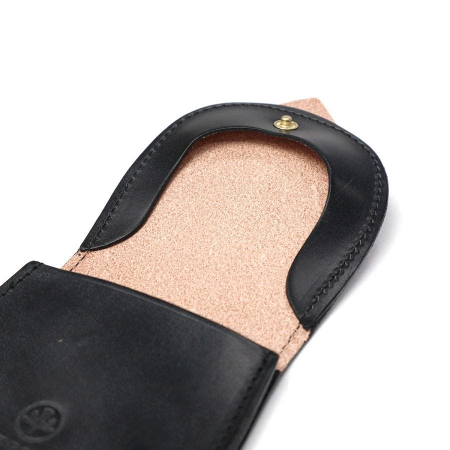 | 手に心地よく収まる 馬蹄型コインケース 携帯性と使いやすさを両立させた馬蹄型のコインケースです。蛇腹のようなマチは、中身が入っていない時は薄型で入れると広がる仕様。フラップは開閉しやすいように三角形のタブが付いており、内側は受け皿としての役割を持っています。ブライドルレザー特有の経年変化を楽しみながら、長くご愛用いただけけるアイテムです。 |