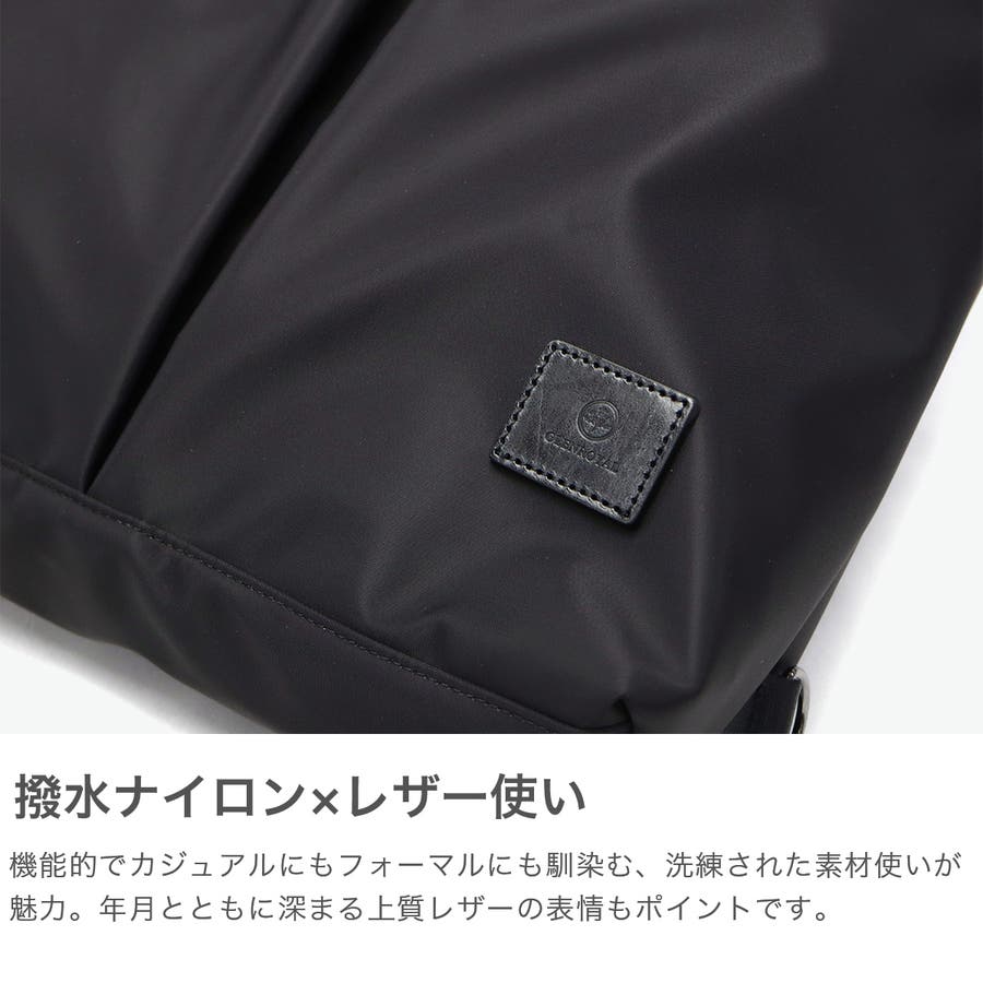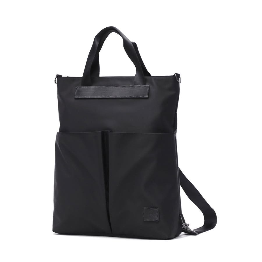 オンオフ問わず活躍する3WAYトートバッグ。トート・ショルダー・リュックの3つの使い方ができるため、シーンに合わせて柔軟なスタイルチェンジが可能です。フロントには500mlのペットボトルが収まる便利なポケットも完備しています。素材は撥水加工を施したナイロンツイルとブライドルレザーを組み合わせ、上品な雰囲気を演出。シンプルながらも高級感があり、長く愛用するほどに経年変化を楽しめます。