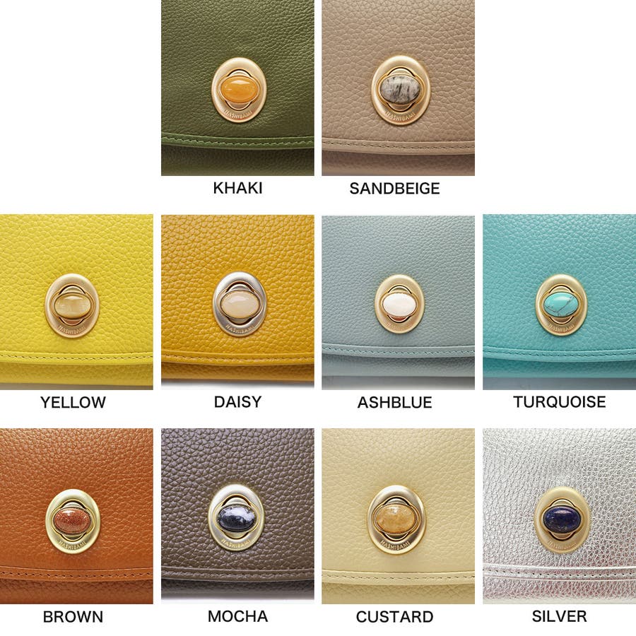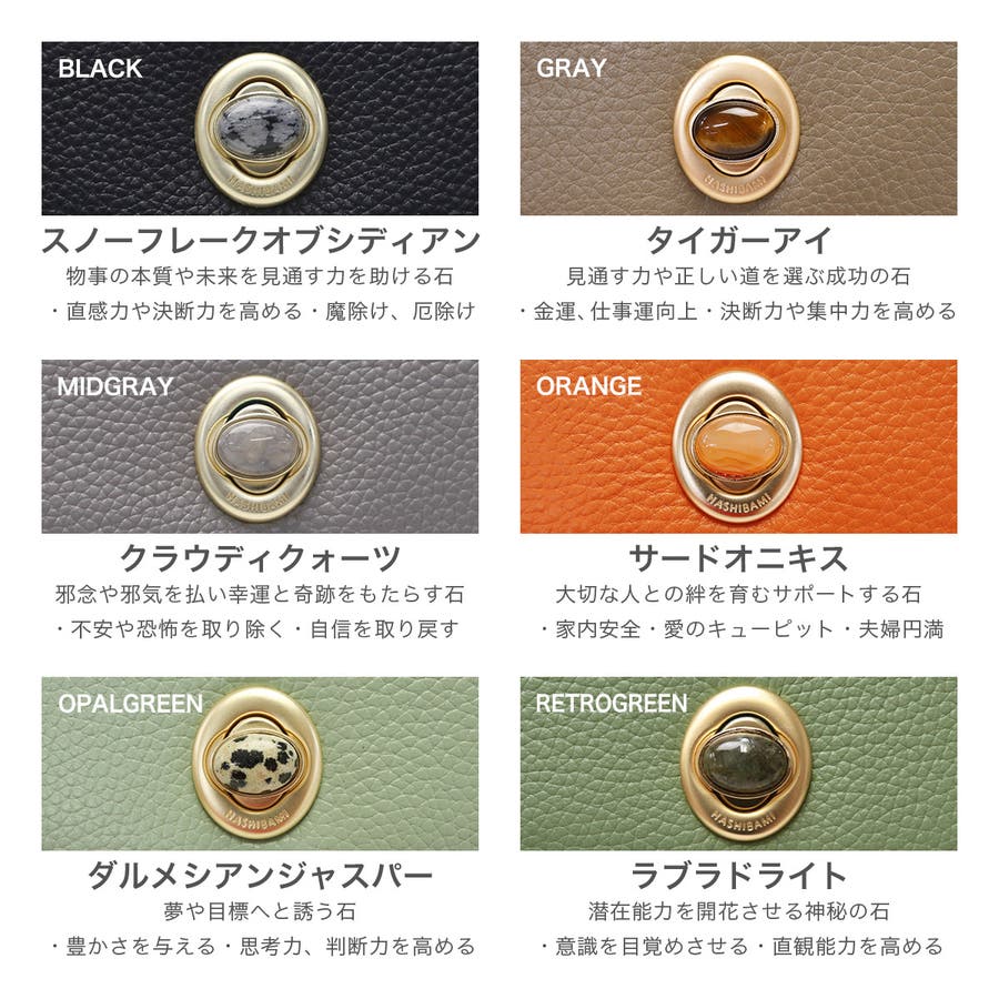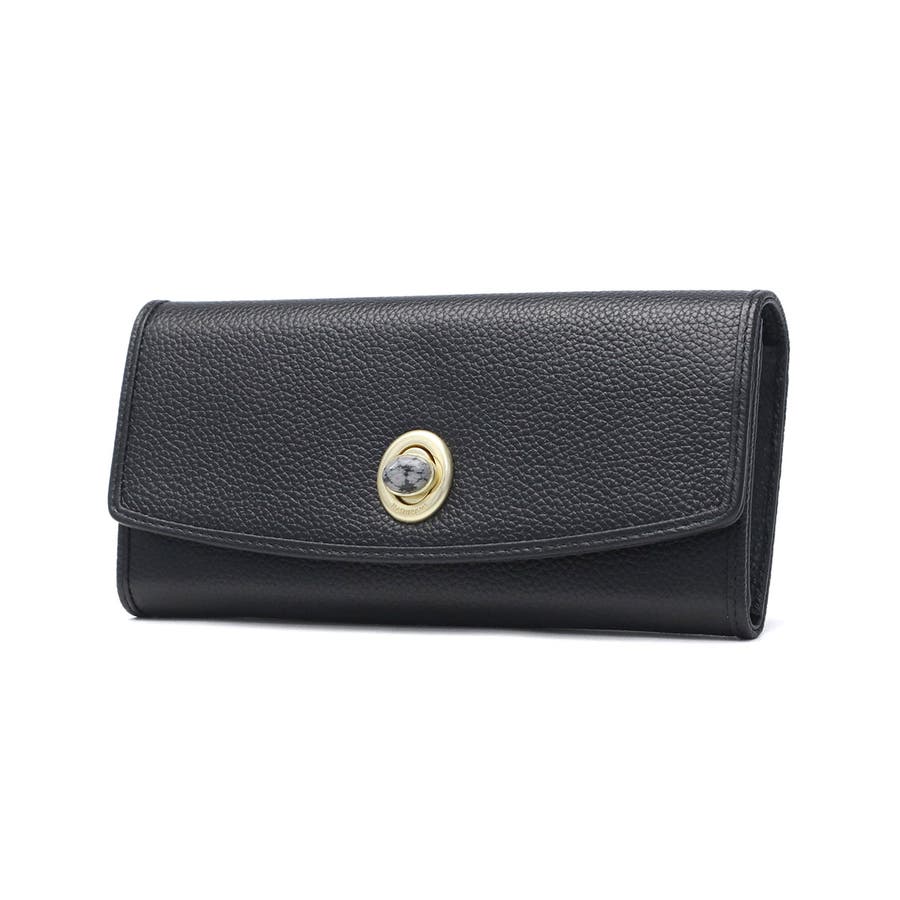天然石をあしらった留め具が大人かわいい長財布。ひとつとして同じものがない天然石を使用し、それぞれの石に意味や効果があるため、自分だけの願いを込めた特別なアイテムになること間違いなしです。内装は、小銭入れや複数のカード入れを備え、収納力に加えて使いやすさにもこだわったつくりがポイント。流行にとらわれず長くお使いいただけるので、大切な人へのプレゼントにもおすすめとなっております。