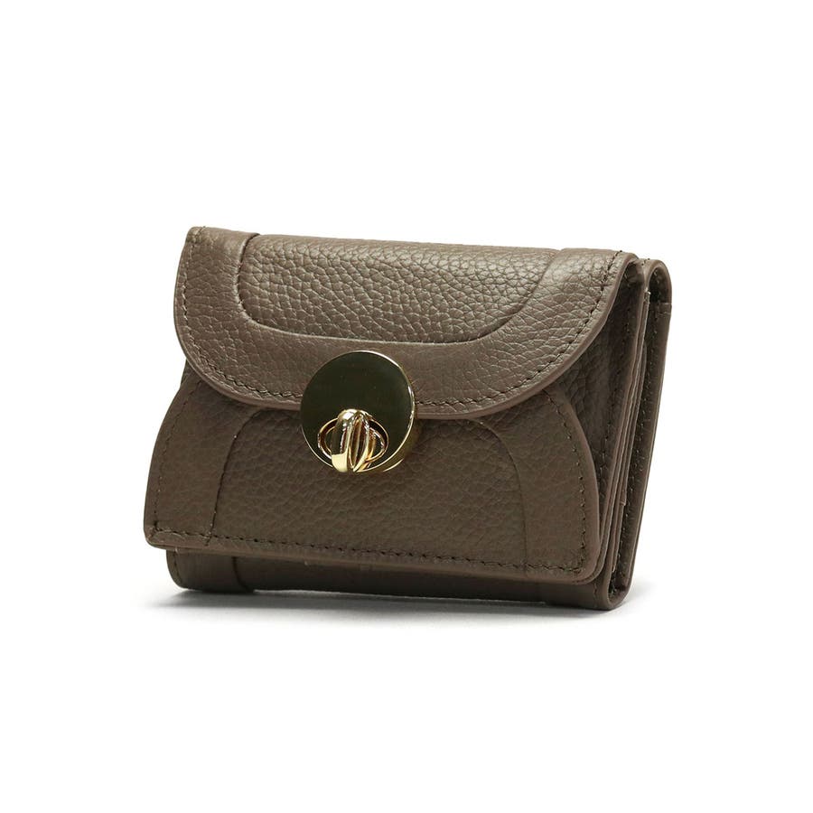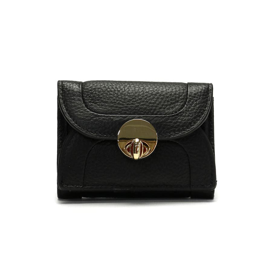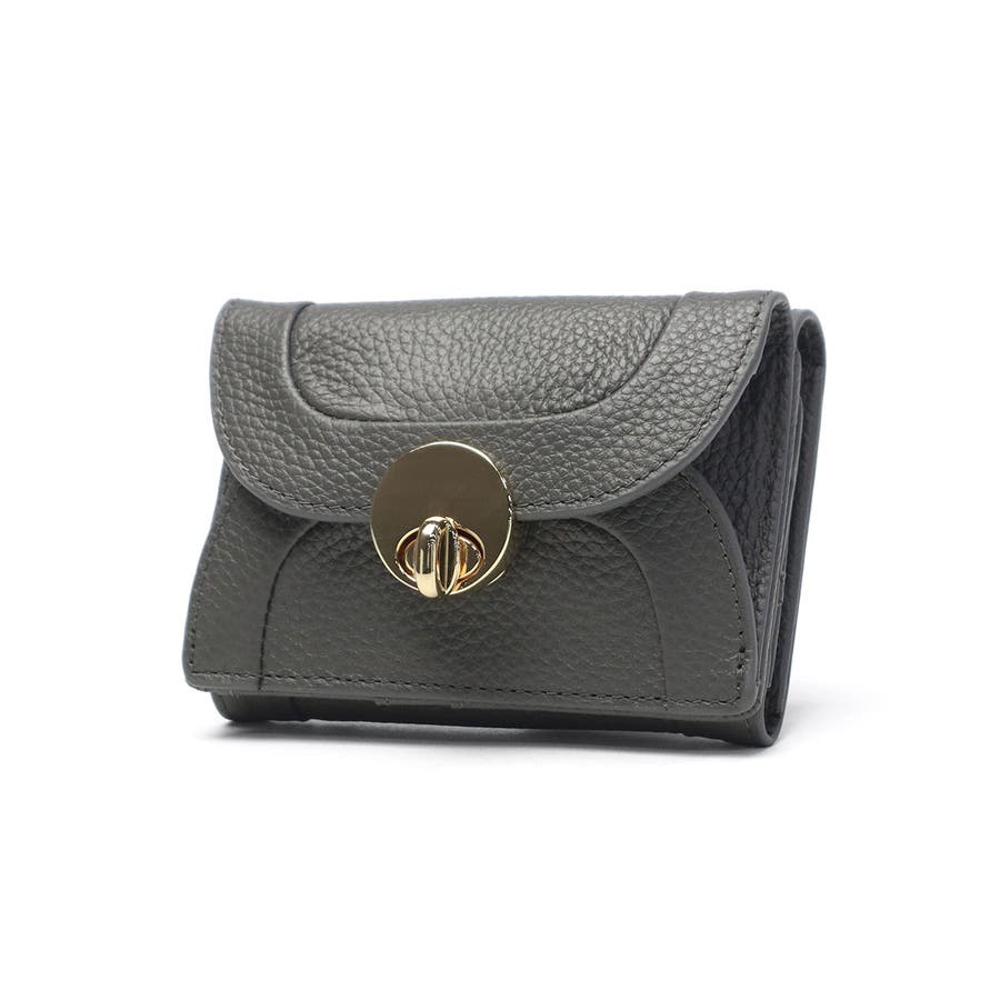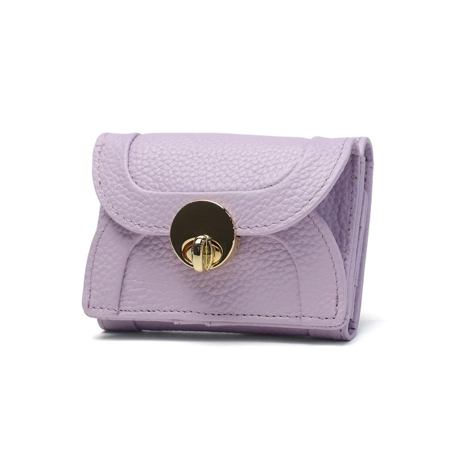 収納力もデザイン性も兼ね備えた三つ折りミニウォレット。上品なレザーに丸いゴールドの金具をあしらうことで、女性らしさと高級感をプラスしたルックスに仕上がっています。自分用にはもちろん、ギフトにもおすすめのアイテムです。