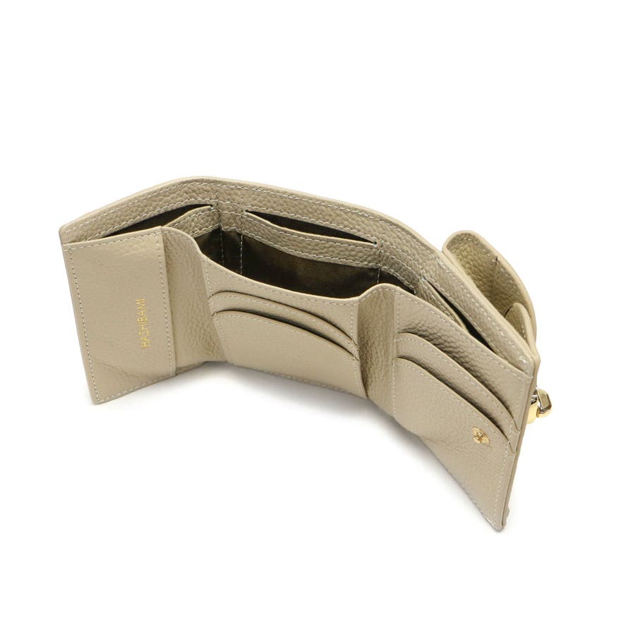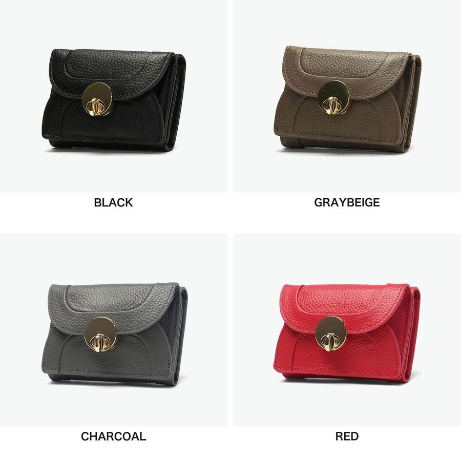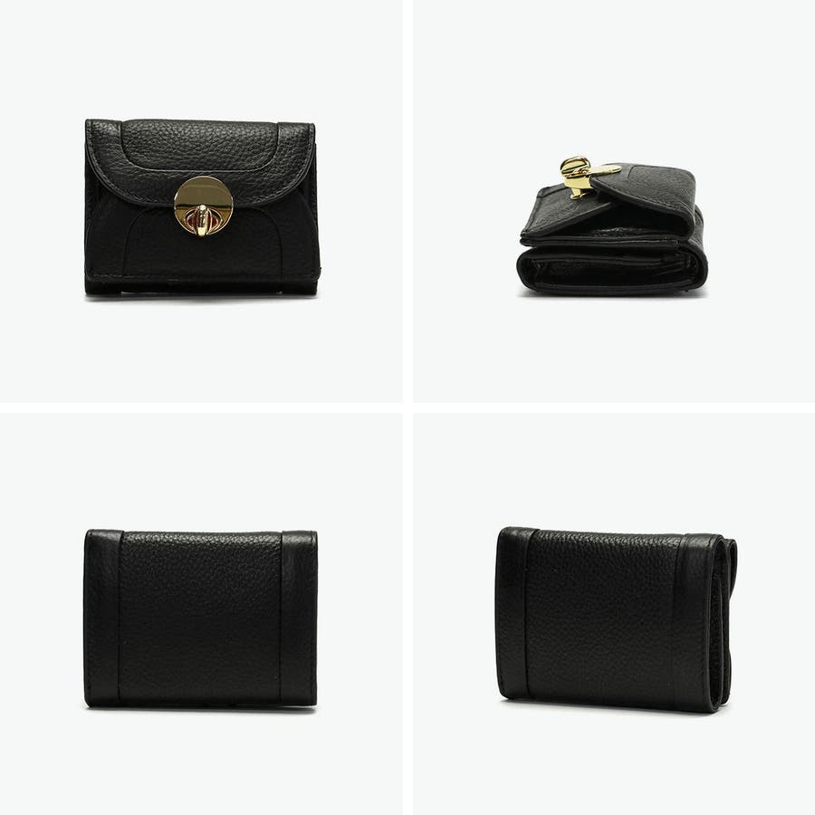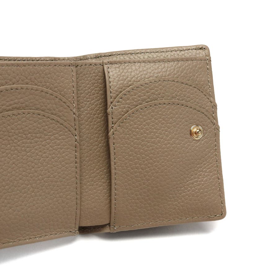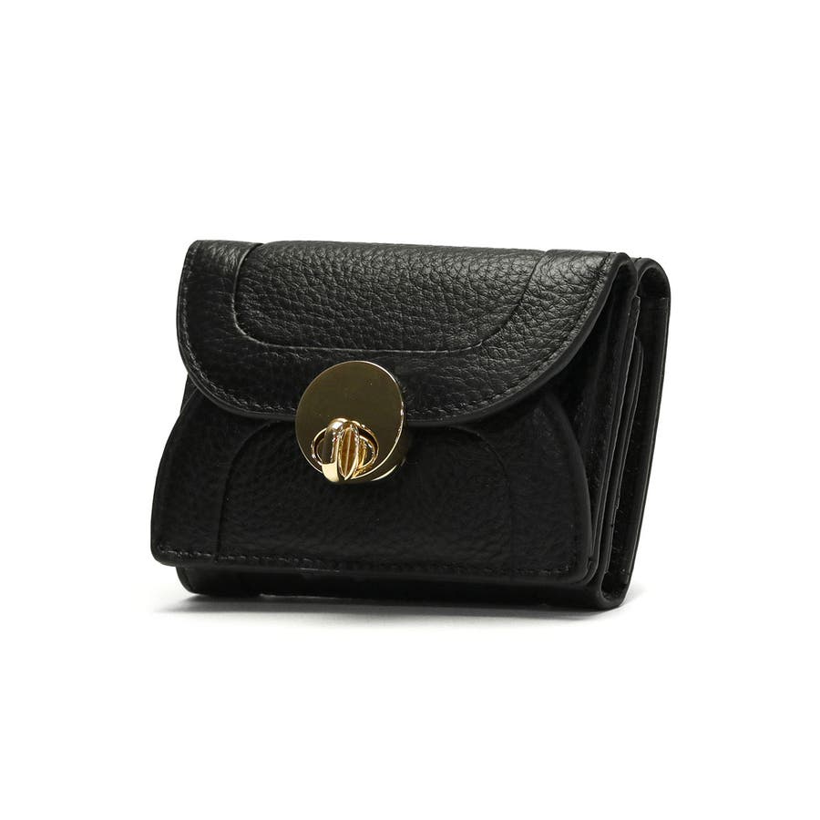 収納力もデザイン性も兼ね備えた三つ折りミニウォレット。上品なレザーに丸いゴールドの金具をあしらうことで、女性らしさと高級感をプラスしたルックスに仕上がっています。自分用にはもちろん、ギフトにもおすすめのアイテムです。