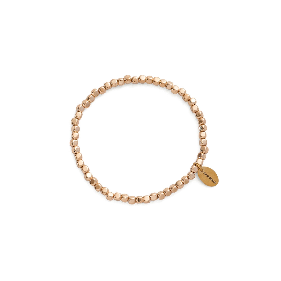 天然石(ヘマタイト)を用いた、オリジナルアクセサリーコレクション。面取りされたキューブパーツが連なったブレスレットです。丸みがあり、女性らしい印象に。単品使いはもちろん、重ね付けもおすすめです。伸縮タイプのブレスレットは手首サイズを選ばず、着脱もスムーズ。保管や持ち歩きに便利な、オリジナルジュエリーポーチ付きで、ギフトにも最適なアイテムです。