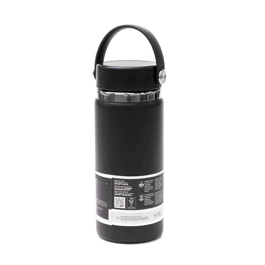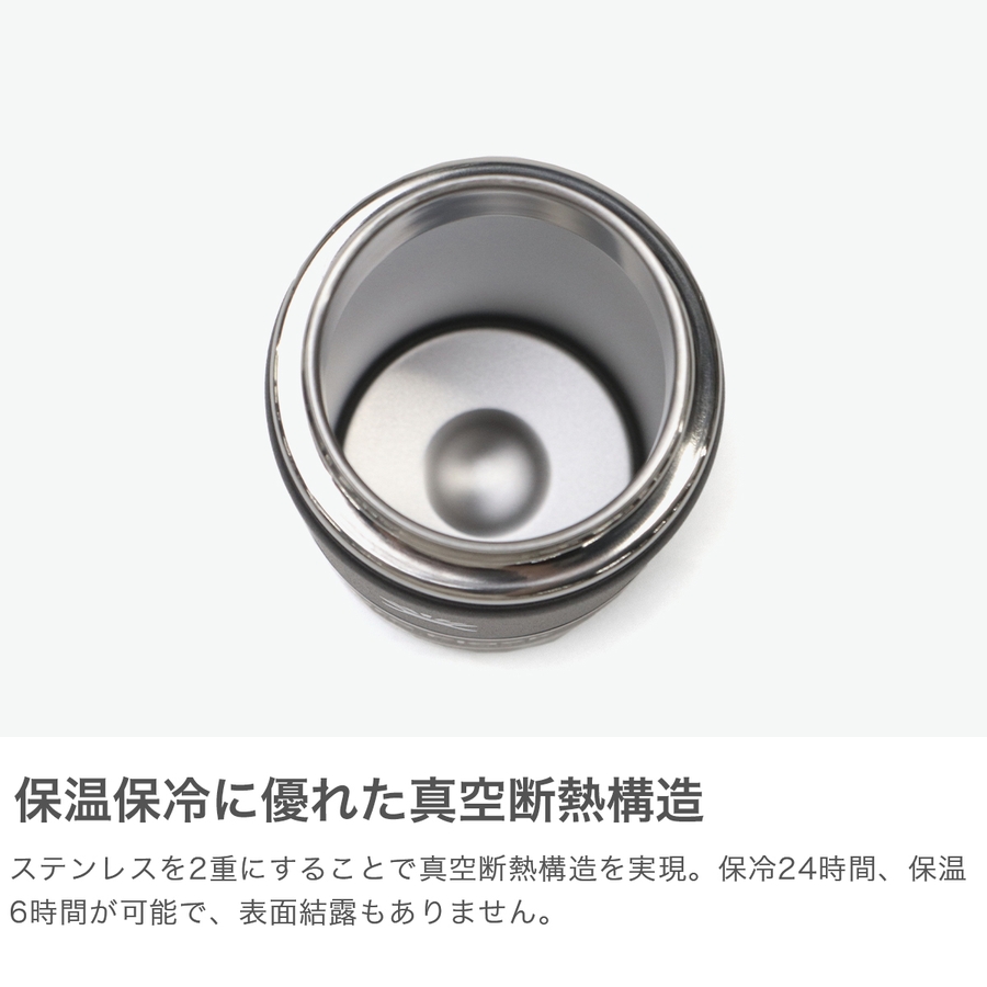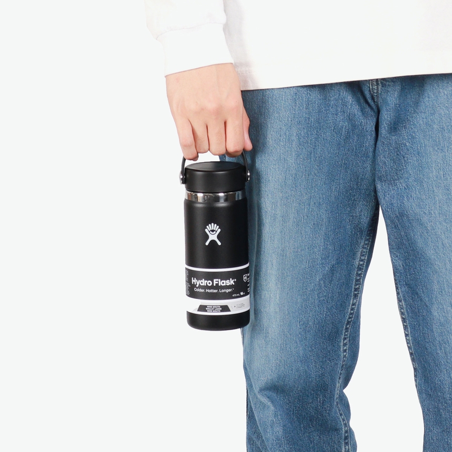 アウトドアや日常での持ち歩きに最適な定番ボトル。こちらは容量473ml、洗いやすさに優れた広口タイプです。本体は真空断熱構造なので、温度差で表面が結露することもありません。人体に悪影響を及ぼすビスフェノールA(BPA)を含まない素材を使用しているため、お子さんにも安心してお使いいただけます。また、ボディ表面に特殊なパウダー加工を施し、濡れた手でも握りやすく滑りにくい、気の利いた設計もポイントです。