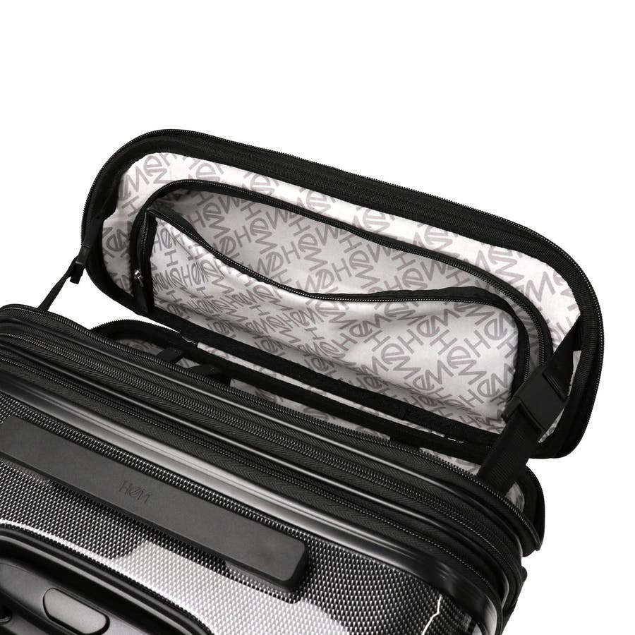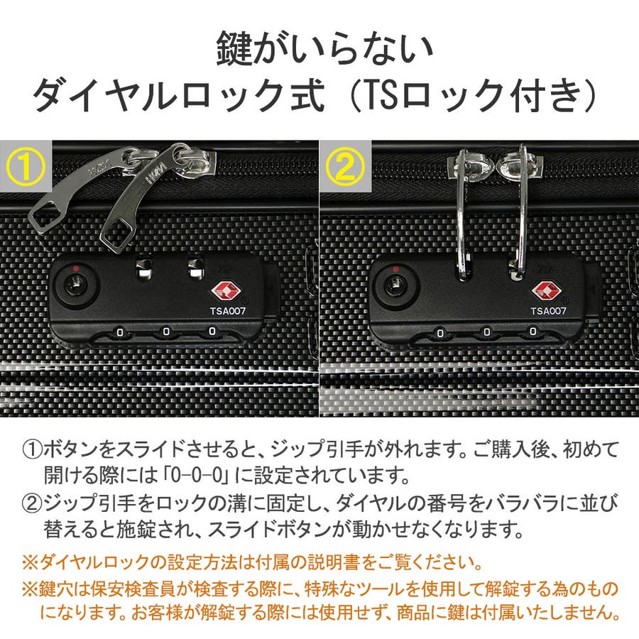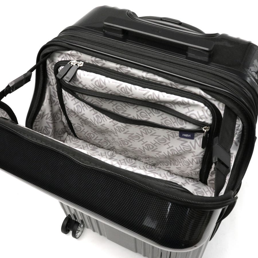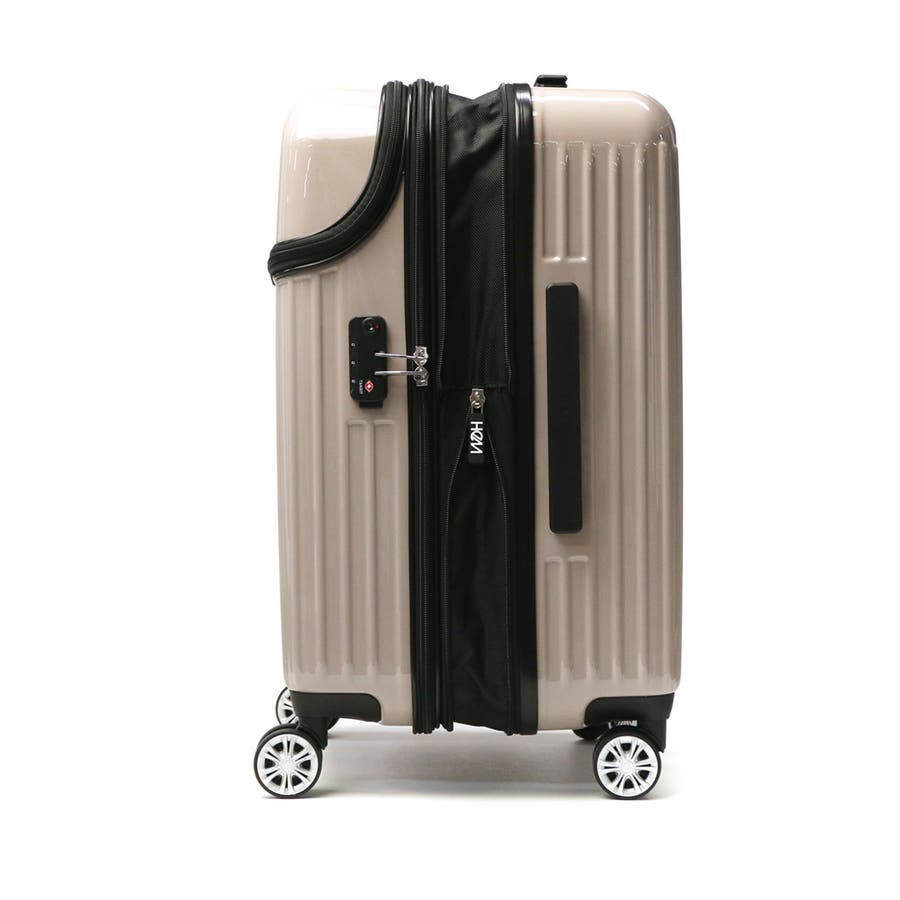 機能性とデザイン性の両方を兼ね揃えたトップオープンキャリー。フロントポケットは必要な荷物をすぐに取り出せる設計となっており、内側背面のファスナーを開くとメインルームにもアクセス可能です。本体サイドはダイヤル式TSAロックを搭載し、トップオープン部分用に南京錠のTSAロックも付属。海外のセキュリティチェックもスムーズに行えます。また男女問わず使えるシンプルなデザインもポイント。