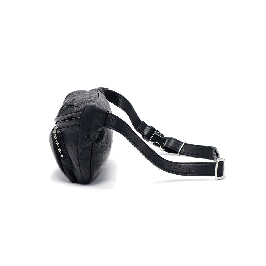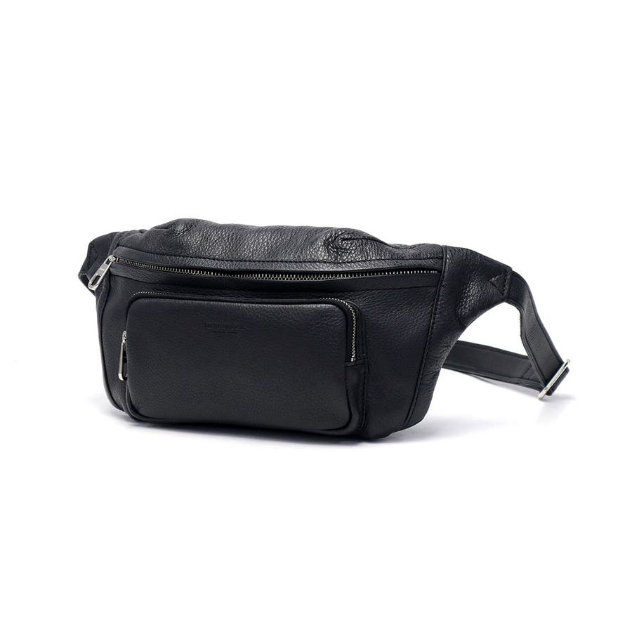 HERGOPOCHの使用するレザーで最もソフトなシュリンクレザーを使用した『TC/(TOCCABENE:トッカベーネ)』シリーズのウエストボディバッグ。本体は、長財布やスマートフォンがゆったり収まるサイズ感です。バッグ背面にはディテールを施していないため、体にしっかりフィットし快適に持ち運びいただけます。