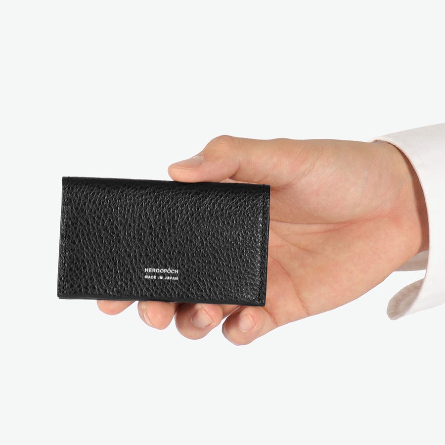 HERGOPOCHの使用するレザーで最もソフトなシュリンクレザーを使用した『TC』シリーズの名刺入れ。ジャケットの胸ポケットにもすっきり収まるスリムデザインです。ビジネスシーンでも身だしなみを損なわない薄さが魅力。ベーシックカラーでどんなスタイルにも馴染み、ギフトにも最適なアイテムです。