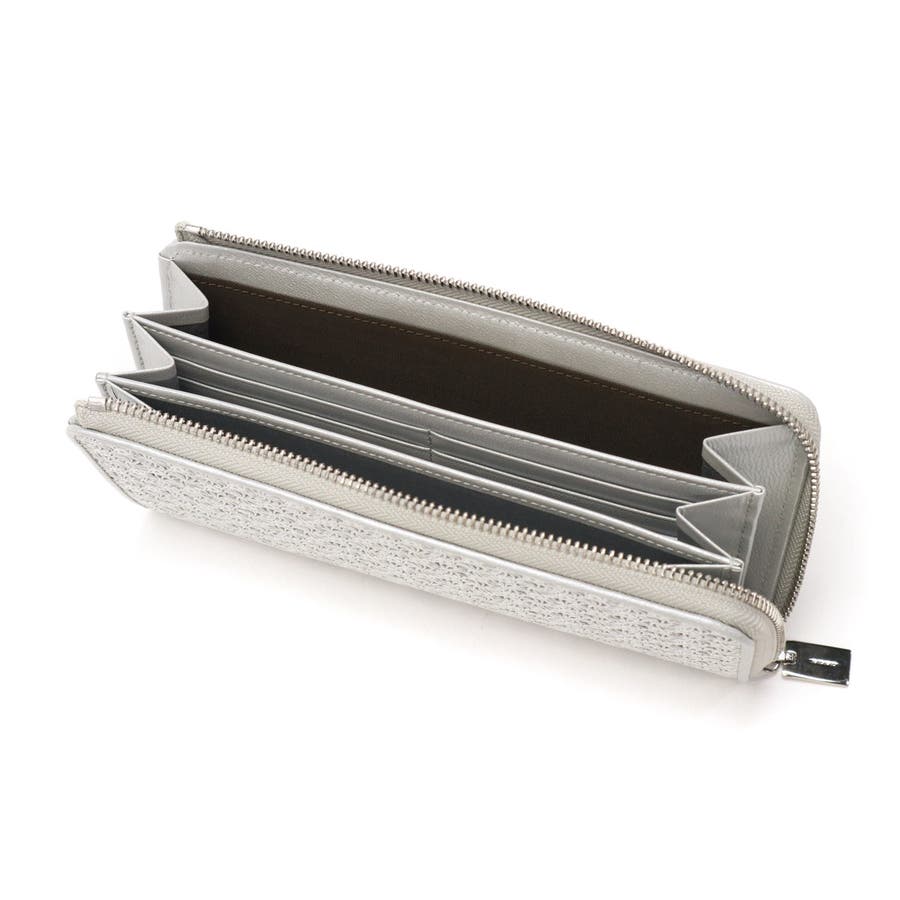 独特なスクリューデザインが人気の『GIRASOLE/ジラソーレ』シリーズのファスナー式長財布。牛革に型押しと型抜きを施した、上品でいて軽やかな仕上がりが特徴です。札入れは2つに分かれており、カードポケットは12個とたっぷり収納ができます。また取り出しやすいよう深さが浅めにつくられた小銭入れもポイント。エレガンスと実用性を兼ね備え、日常のスタイルを一層引き立てます。