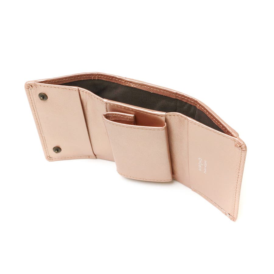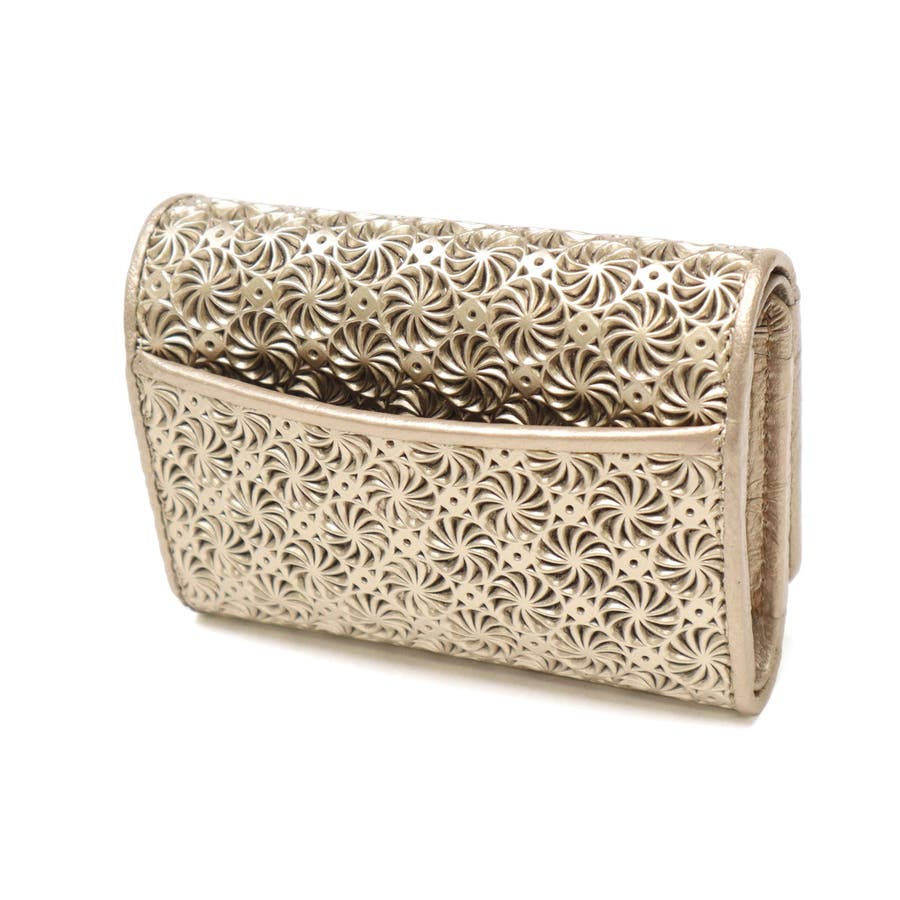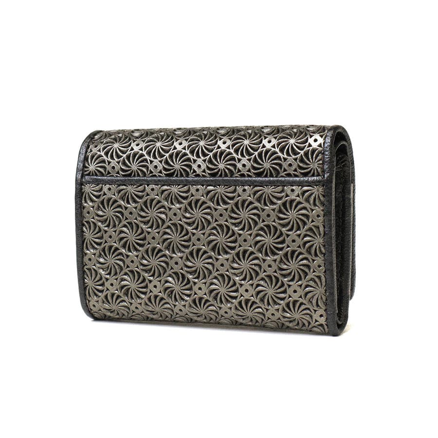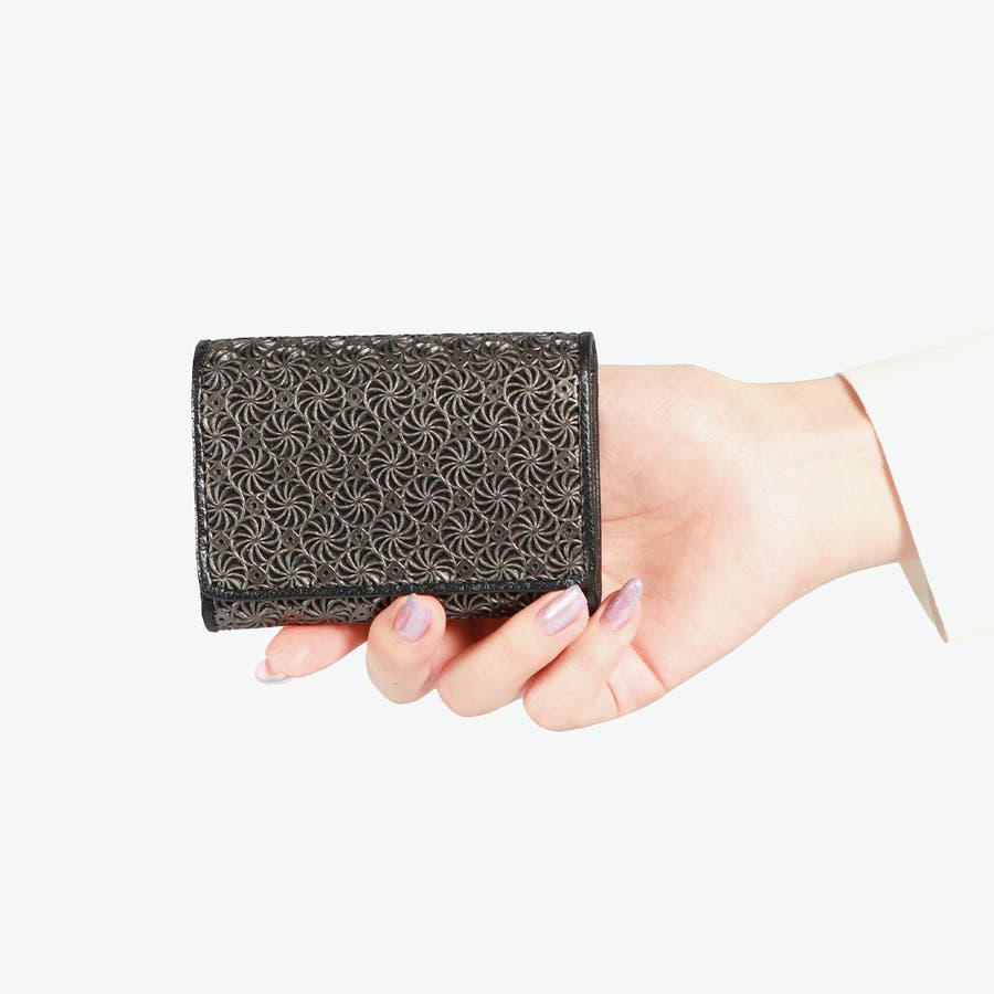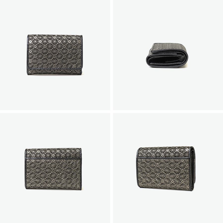 独特なスクリューデザインが人気の『GIRASOLE/ジラソーレ』シリーズの三つ折り財布。牛革に型押しと型抜きを施した、上品でいて軽やかな仕上がりが特徴です。コンパクトながらも充実した収納力と、小さめのバッグにもぴったり収まるサイズ感が嬉しいポイント。エレガンスと実用性を兼ね備え、日常のスタイルを一層引き立てます。