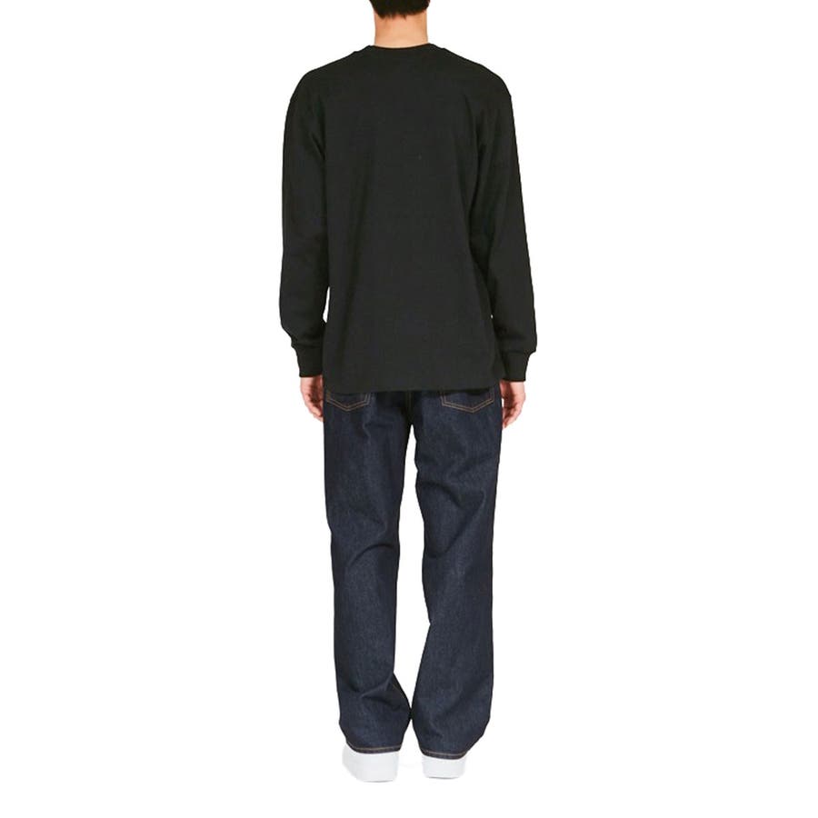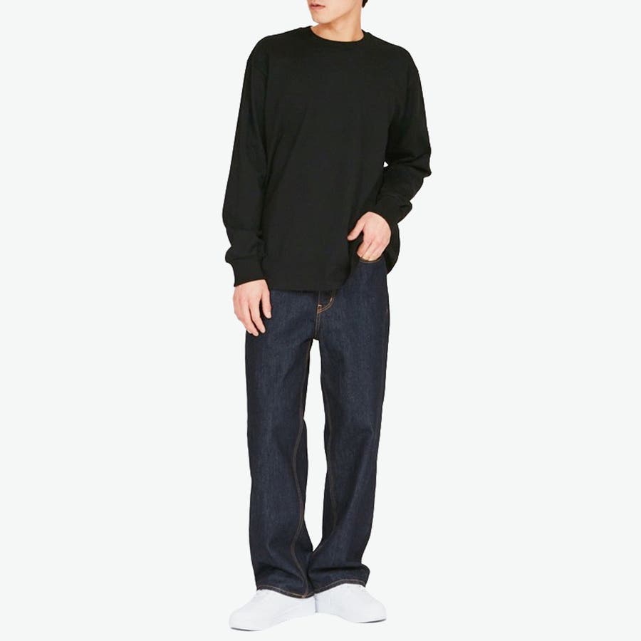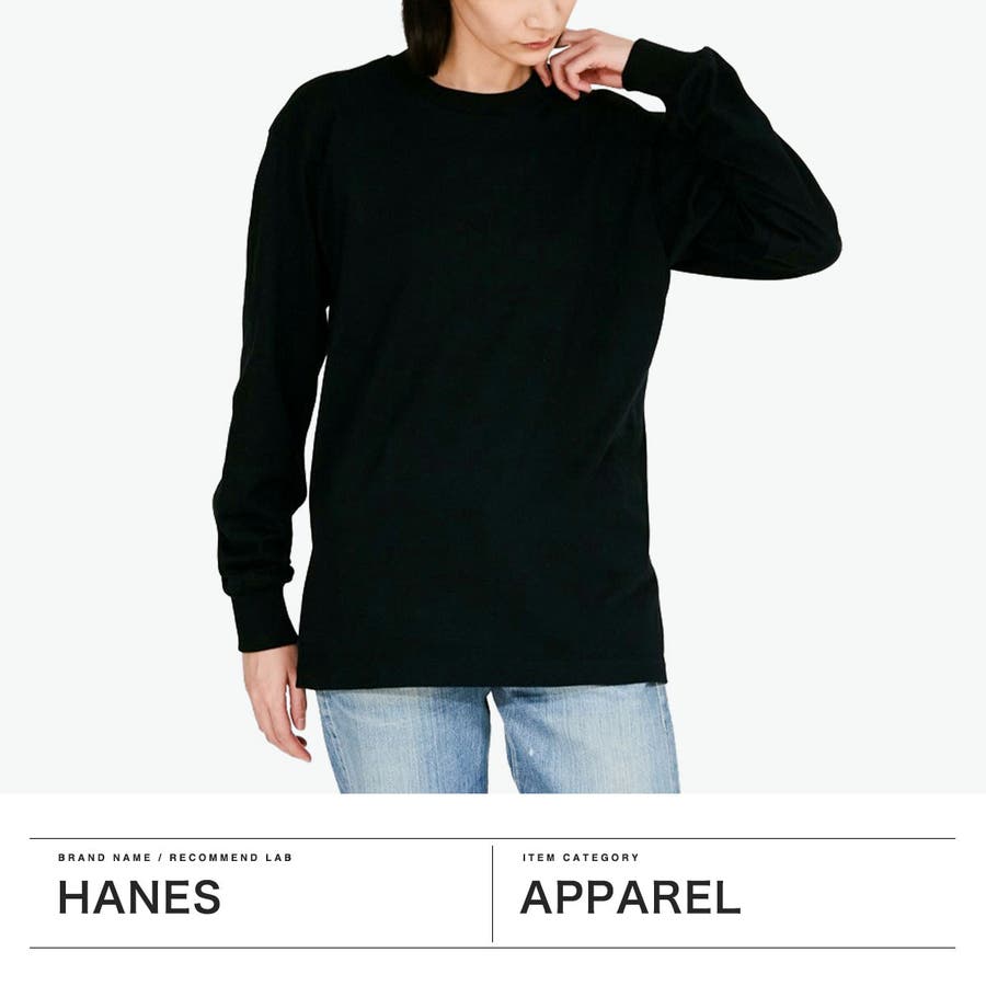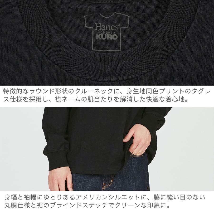 『Hanes T-SHIRTS KURO』のクルーネックロングスリーブTシャツです。生地は3P-T(3枚入りパックTシャツ)赤ラベルで使用している糸を双糸にして編み上げた7.0オンス生地は、程よい厚みと柔らかさを両立。独自製法の先染めBLACKで色あせしにくく、美しい黒をキープ。脇に縫い目のない丸胴仕様とタグレス設計で快適な着心地を実現。袖口はリブ仕様で、たくし上げなどの着こなしも自在。ゆとりのあるアメリカンシルエットで、理想の黒Tを追求した一枚です。
