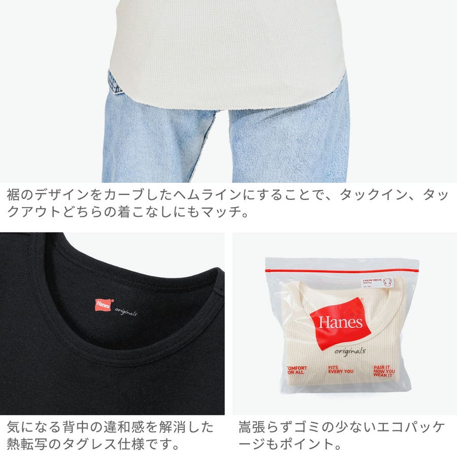 ベーシックとは一線を画した、現代的な快適性とファッション性を融合した『Hanes Originals』のワッフルロングスリーブTシャツ。凹凸感のあるワッフル素材は、洗うほどに肌になじむ柔らかなコットン混。動きやすいラグランスリーブとフラットな縫製、タグレス仕様で快適な着心地を追求しました。カーブしたヘムラインによりタックイン・アウトも自在。レイヤードから一枚着まで、幅広いコーディネートに活躍する一着です。