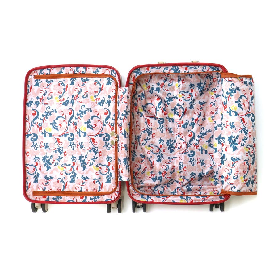 クラシックなトランク風デザインのファスナータイプスーツケース『Notre/ノートル』の、3~4泊程度に対応した31Lの機内持ち込みサイズです。内装には本体カラーごとに異なる抗菌加工を施したプリント生地を採用。ケースを開くたびに気分が華やぐ可愛さと上品さを兼ね備えたデザインに加え、機能性にも優れたアイテムとなっています。