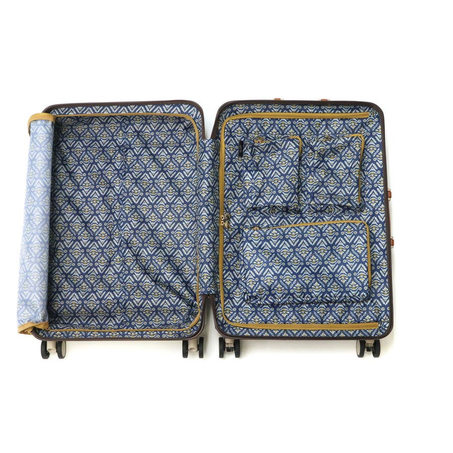 クラシックなトランク風デザインのファスナータイプスーツケース『Notre/ノートル』の、4~5泊程度に対応した50Lサイズです。内装には本体カラーごとに異なる抗菌加工を施したプリント生地を採用。ケースを開くたびに気分が華やぐ可愛さと上品さを兼ね備えたデザインに加え、機能性にも優れたアイテムとなっています。