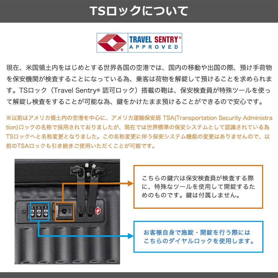 ・エキスパンダブル機能付きの製品は、マチ拡張時の3辺の和が機内持ち込みサイズ、預け入れ無料サイズを超える場合がございます。また、航空会社や飛行機の機種などによって規定が異なりますので、予めご確認の上お求めください。