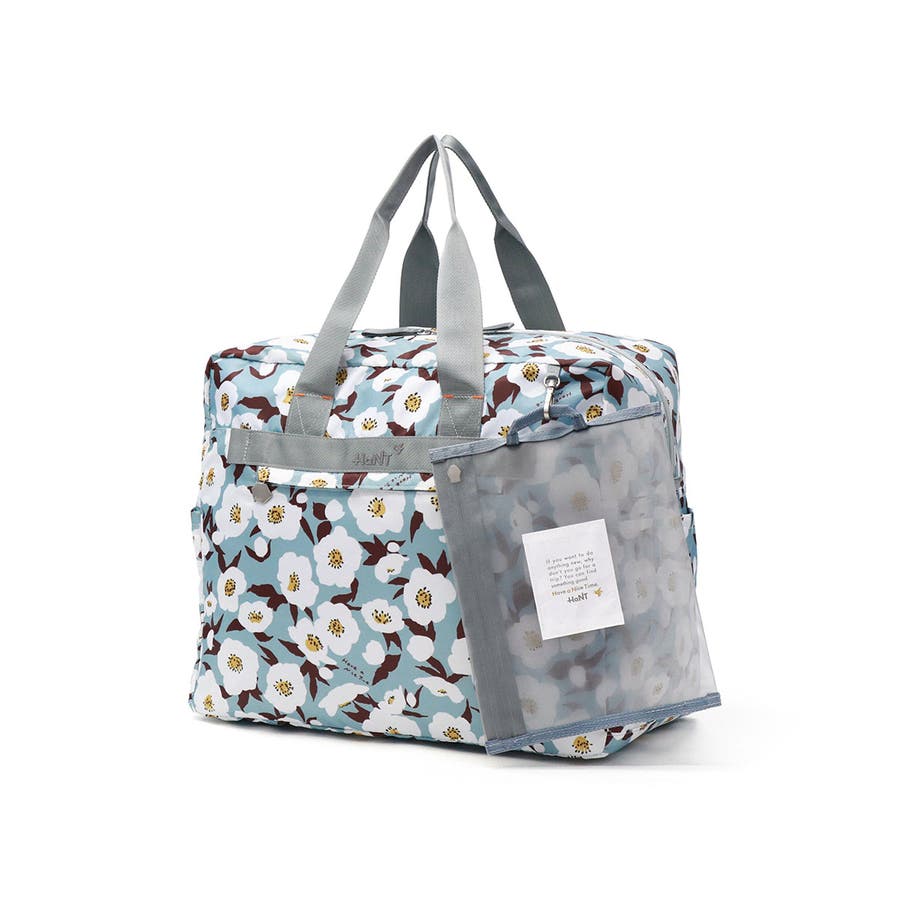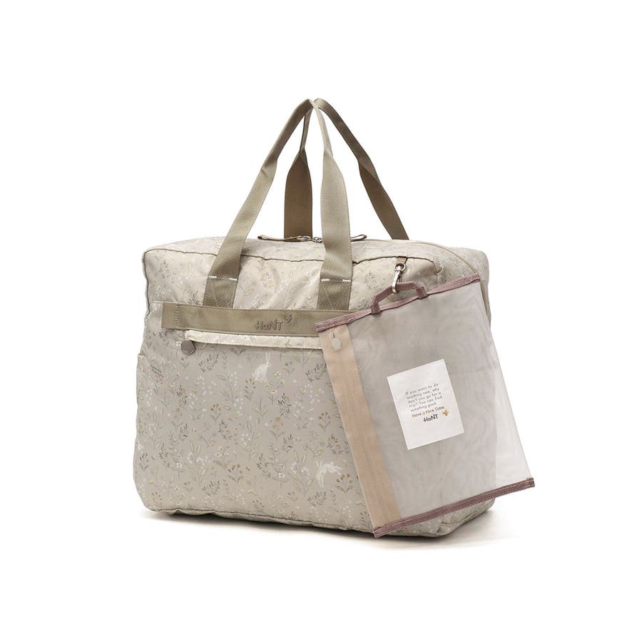 コンパクトに収納でき、荷物が増えた時のサブバッグにも便利なパッカブル式ボストンバッグ。折りたたんで内装ポケットと付属のチュールポーチのどちらにでも収納可能な仕様。スーツケースにセットアップすることができ走行時にバッグのふらつきを防ぎます。旅行やおでかけがもっと楽しくなるような、HaNTオリジナルの可愛いパターン生地は、スーツケースシリーズ「ココント」と連動した柄展開で一緒に使うのもおすすめです。