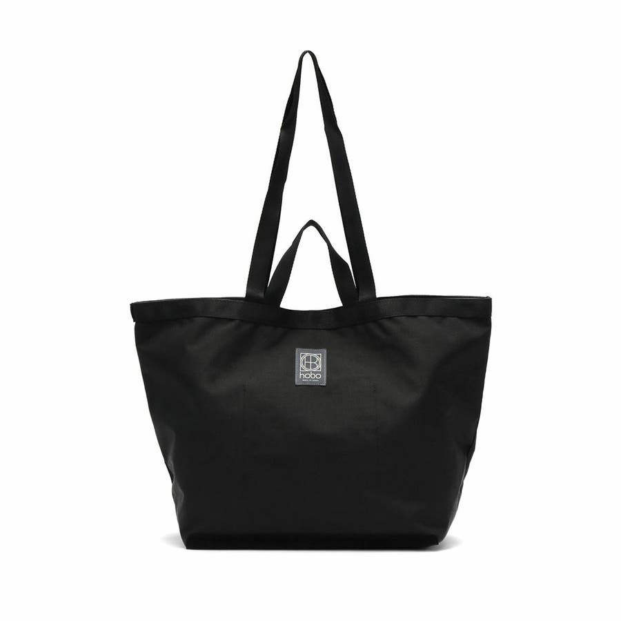 hobo/ホーボー/TOTE BAG NYLON OXFORD with COW SUEDE/NYLON OXFORD/トートバッグ/トート/バッグ/カバン/肩掛け/肩掛けバッグ/肩掛けカバン/手持ち/手提げ/ハンドル/持ち手長め/横型/横/ヨコ/A4/26L/26リットル/大きめ/大き目/大きい/大容量/軽量/軽い/ナイロン/布/本革/革/牛革/レザー/カウスウェード/レザーコンビ/丈夫/杢調/メランジ/ヘザー/トラベル/旅行/レジャー/サブバッグ/シンプル/カジュアル/ナチュラル/ビンテージ/ストリート/ブランド/おしゃれ/オシャレ/ロゴ/刺繍/無地/黒/ブラック/大人/大学生/学生/日本製/メンズ/レディース/肩かけ