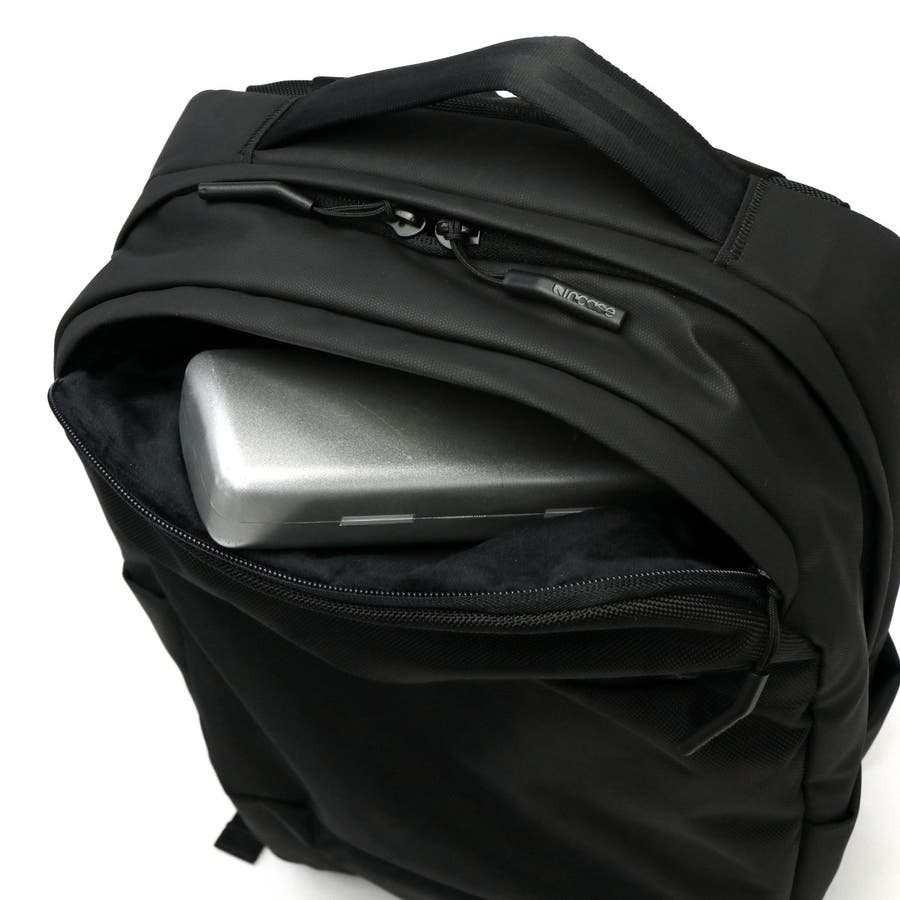シンプルでモダンなデザインが魅力の高機能バックパック。メインコンパートメントには、ノートPCを包み込むようにクッションを配置した、360度プロテクション構造を採用し、あらゆる方面からの衝撃を緩和します。フロントパネルには、タブレット端末や小物などの収納に適したオーガナイザーポケットを完備。ビジネスシーンにはもちろん、シティライフにもマッチするデザインに仕上がっています。