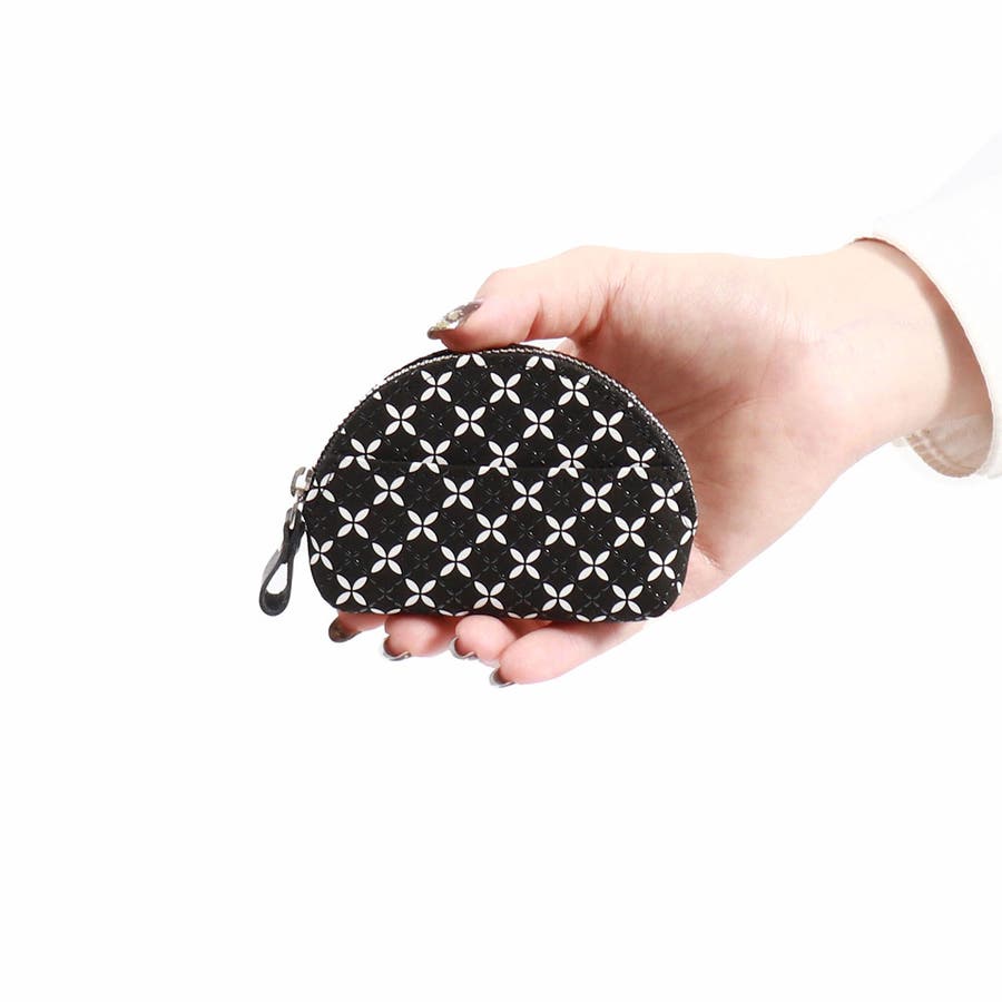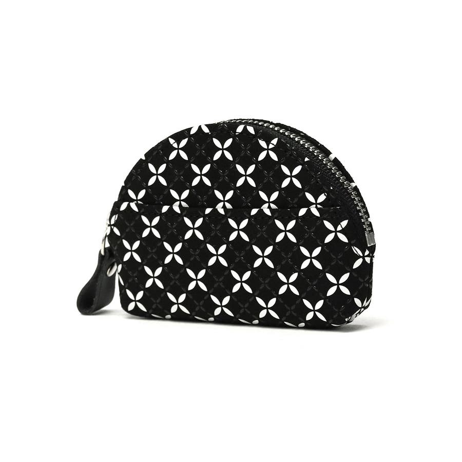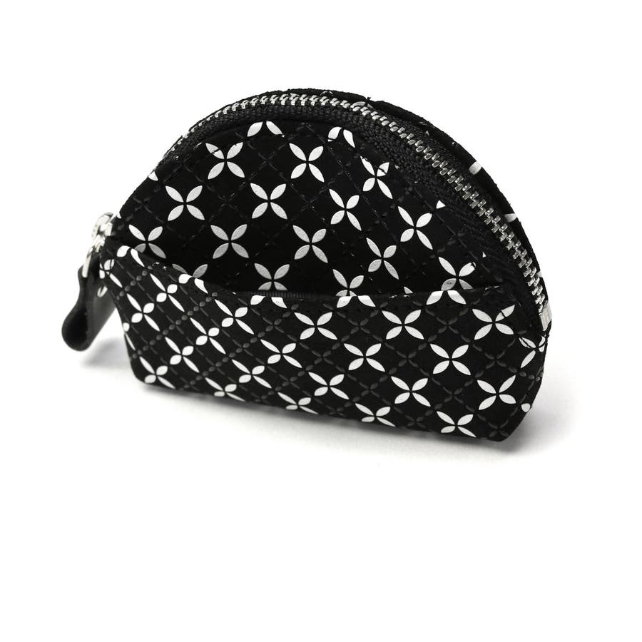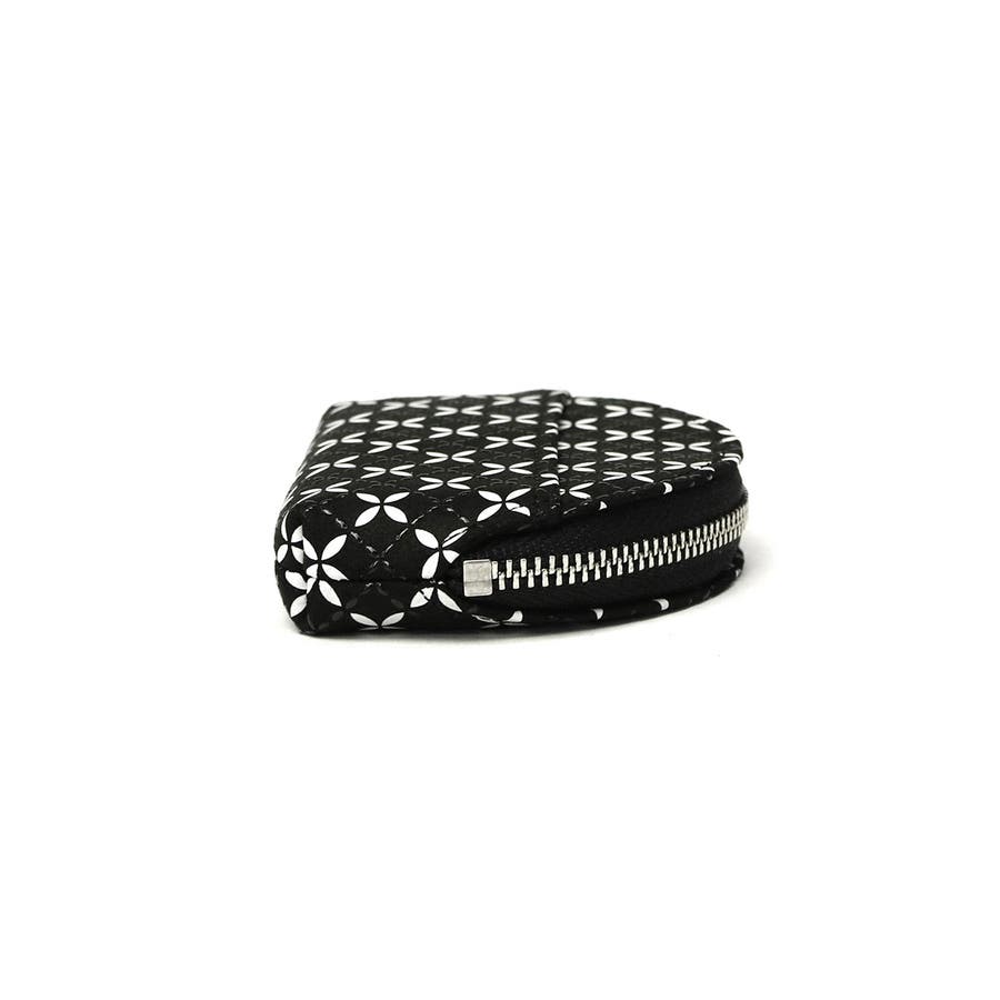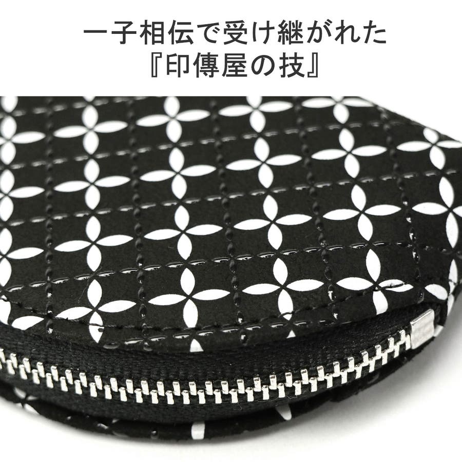 柔らかな鹿革の風合いに、漆柄が魅力の革工芸「印伝」の小銭入れです。こちらの「そよか」は、軽やかで気の向くままに進んでいく“そよ風”をイメージしたシリーズ。幸せや縁が広がる模様として親しまれる七宝をつなげて、白更紗と黒漆のコントラストで描き、調和によって生まれるかたちを際立たせました。丸みを帯びた可愛らしいデザインと、大きく開いて中身が見やすいフォルムが特徴です。小銭はもちろん、アクセサリーなどを収納するマルチケースとしてもおすすめです。