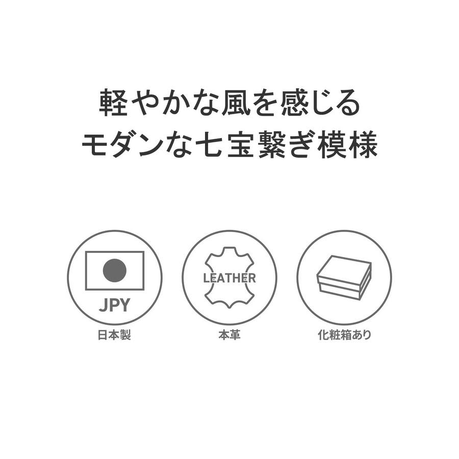 柔らかな鹿革の風合いに、漆柄が魅力の革工芸「印伝」のかぶせタイプの長財布です。こちらの「そよか」は、軽やかで気の向くままに進んでいく“そよ風”をイメージしたシリーズ。幸せや縁が広がる模様として親しまれる七宝をつなげて、白更紗と黒漆のコントラストで描き、調和によって生まれるかたちを際立たせました。ポケットが充実した大容量なつくりで、お札や多数のカードを仕分けて持ち歩きたい方におすすめです。