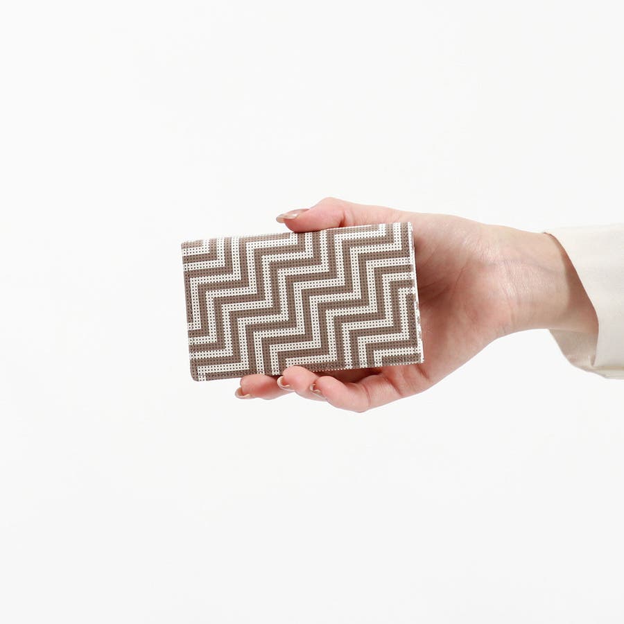 中世ヨーロッパで諸侯の紋章に用いられた山型のシェブロン。その連続模様は古くから建築や美術、工芸に表されました。西洋から東洋へ、時代も越えていま日本の伝統工芸と融合。手にする人の粋を漂わせる、大人のための新しい印伝の登場です。落ち着きのある色調で構成された幾何学模様のシェブロンは、オンオフ関わらず様々なスタイリングに調和しながら、大人の香気をほどよく添えます。