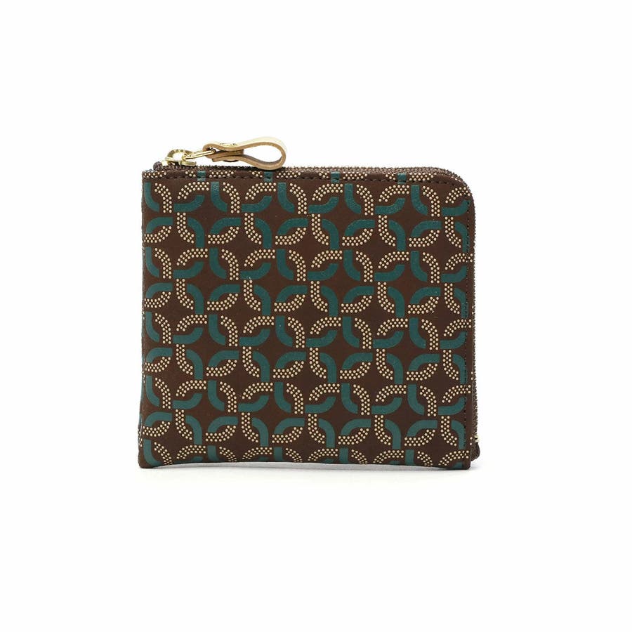 | クラシカルな趣が漂う コンパクトウォレット 白漆のドットで描かれた輪と、ディープグリーンの更紗模様が重なり合い、輪の躍動感をブランドならではの地革で際立たせた『Ringlet/リングレット』シリーズのコンパクトウォレット。本体はL字ファスナーを採用し、大きく口が開くため中身が見やすく、裏地にあしらわれたターコイズブルーがさりげないアクセントになっています。持ち歩きに便利なスリムなデザインとシンプルな内装で、会計時もスマートにお使いいただける逸品です。 |