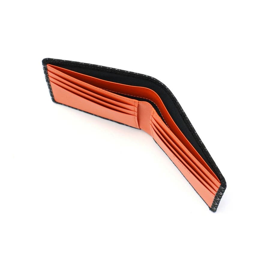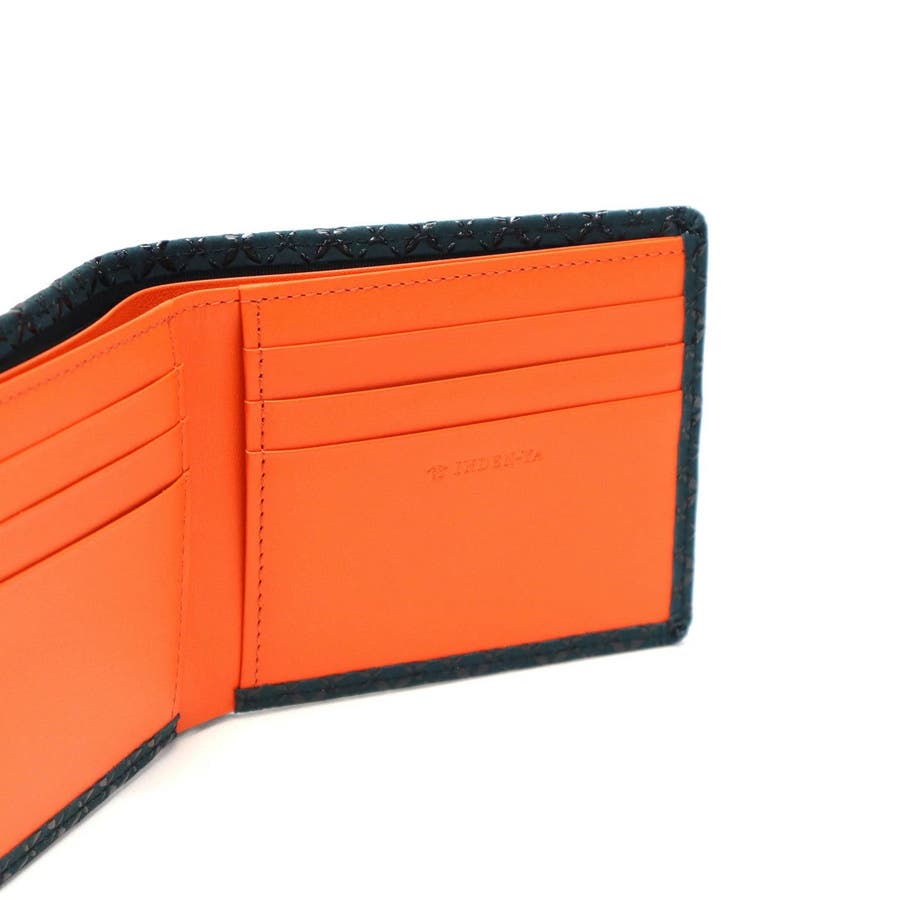 | 伝統と個性が共鳴する 大人の二つ折り財布 伝統模様をあしらった、風格漂う大人の雰囲気に遊び心が光る印伝の新ライン『HISOCA』の二つ折り財布。外側は落ち着きある黒漆が優美に輝き、内側には鮮やかなオレンジを配することで遊び心を添えています。小銭入れがない薄型タイプで、シンプルな機能性を求める方におすすめ。これまでの印伝にはなかった新たな表情をお楽しみください。 |