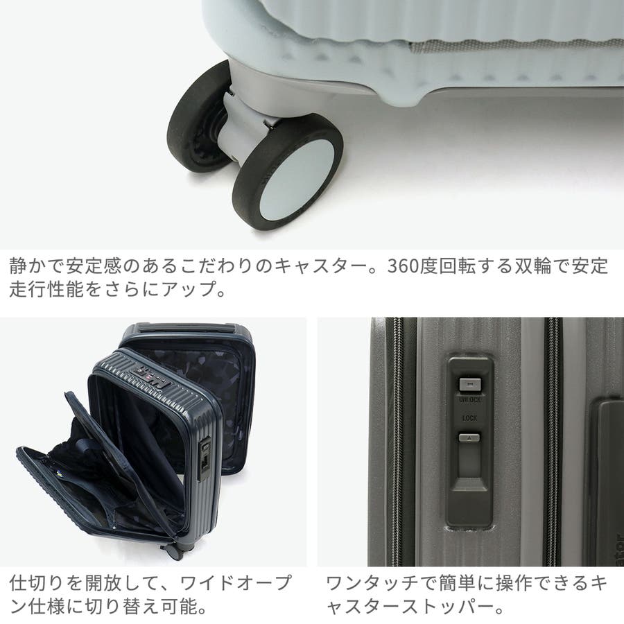 身軽な旅を実現する、容量21Lの小型キャリーケース。本体は機内持ち込みが可能な他、一般的なサイズのコインロッカーにも収納可能です。スリムなフロントポケットは書類の出し入れがしやすく、フロントからメインへアクセスできるため移動中の小物整理もスムーズ。ワンタッチブレーキで揺れを抑え、静音双輪キャスターが快適な走行を実現。軽量で衝撃や摩擦に強いポリカーボネート製で、荷物を安心して持ち運べます。強度と機能性を兼ね備え、ストレスのない移動を叶える一台です。