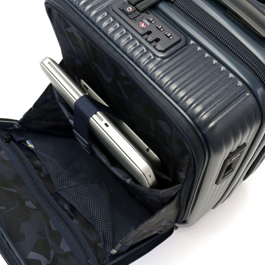 身軽な旅を実現する、容量38Lで機内持ち込みが可能なキャリーケース。本体は、衝撃に強いポリカーボネイトを採用。フロントにはクッション性のあるPC収納とタブレット収納を搭載しており、ビジネスシーンにも最適です。フロントからメインへアクセスできるため移動中の小物整理もスムーズ。ワンタッチブレーキが揺れを抑え、静音双輪キャスターが快適な走行をサポート。北欧テイストのカラーとデザインも魅力の、強度と機能性を兼ね備えた一台です。