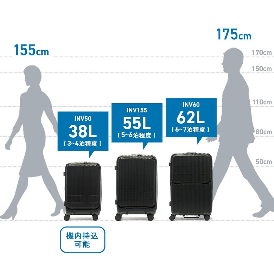 ・エキスパンダブル機能付きの製品は、マチ拡張時の3辺の和が機内持ち込みサイズ、預け入れ無料サイズを超える場合がございます。また、航空会社や飛行機の機種などによって規定が異なりますので、予めご確認の上お求めください。