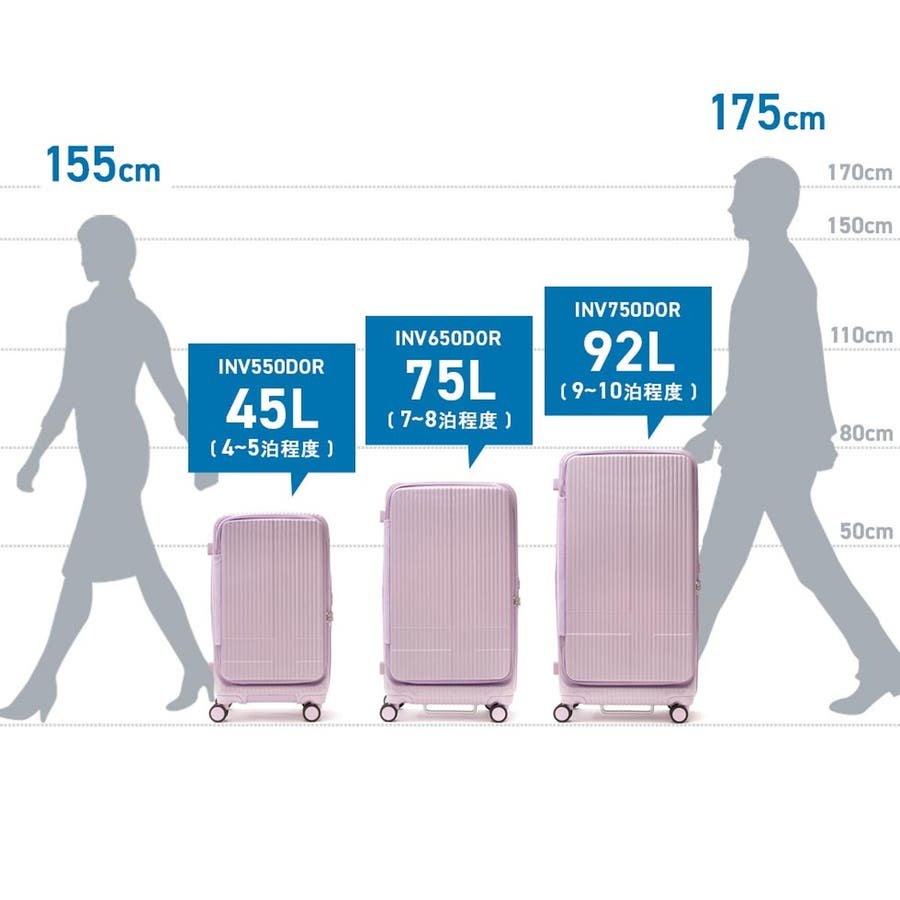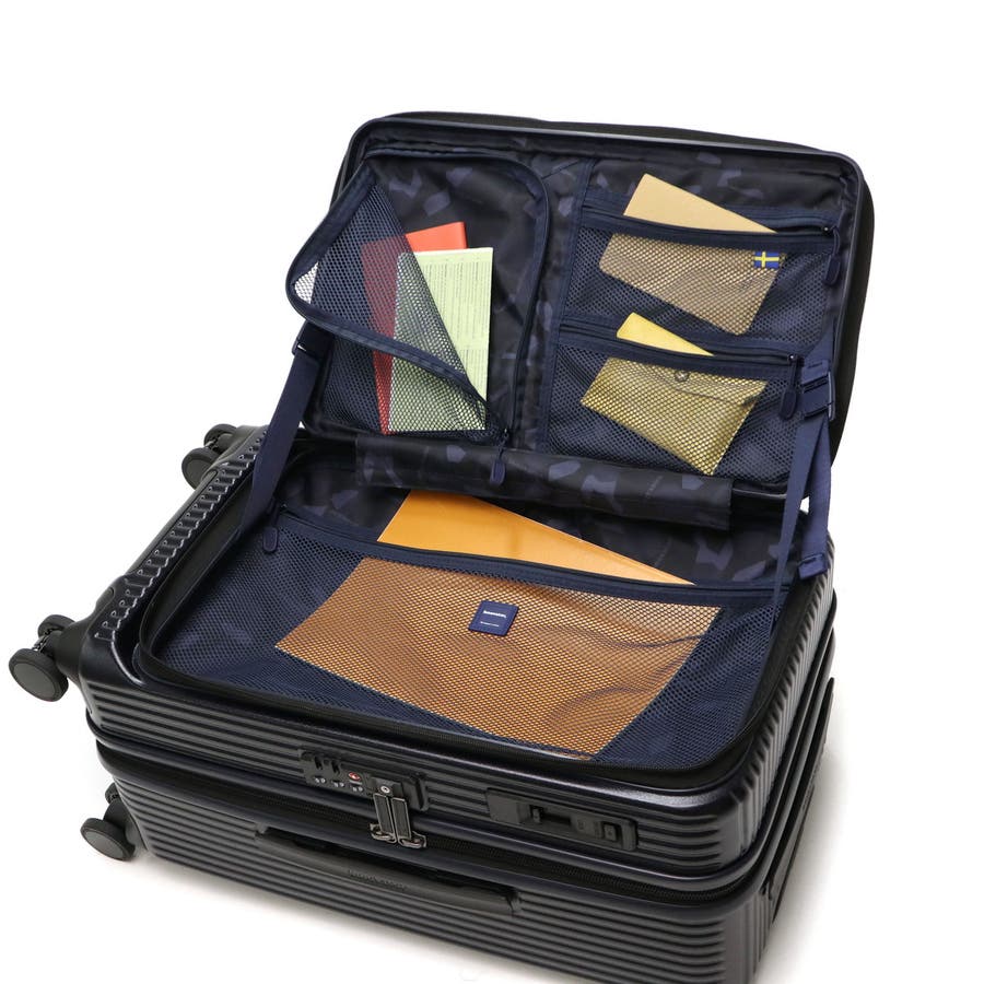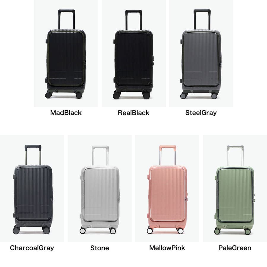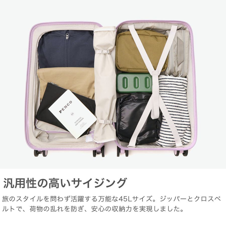 4~5泊程度の旅行に適した容量45Lのスーツケース。本体にはフロントオープンポケットを搭載しており、移動中の荷物の取り出しもスムーズに行えます。また静音キャスターやキャスターストッパー、海外旅行にも安心なTSAロックを装備するなど、便利な機能が集約された頼もしい設計が魅力です。