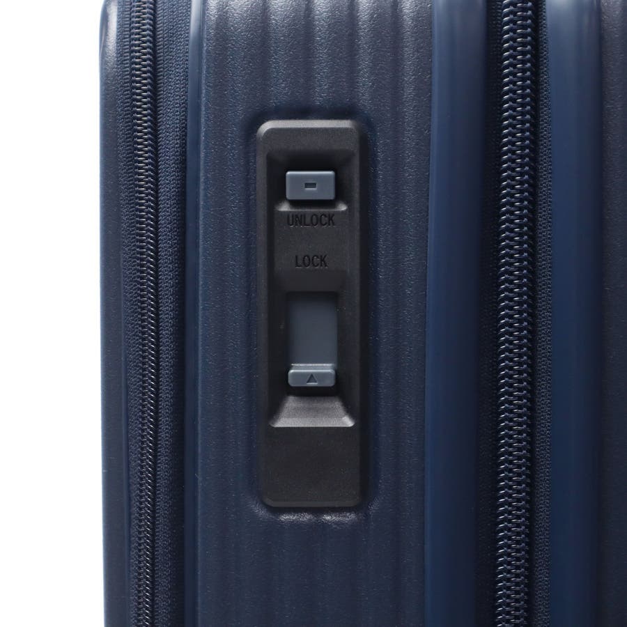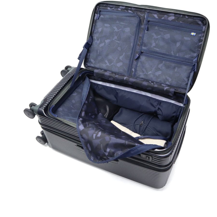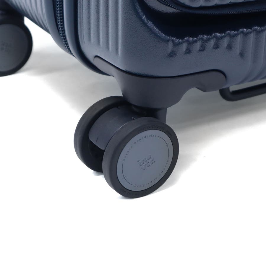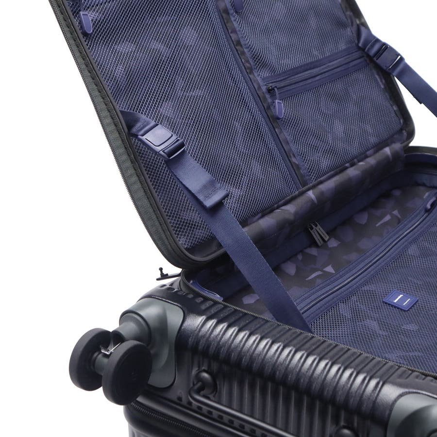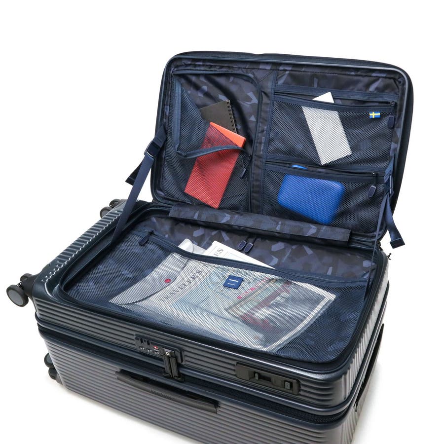 7~8泊の旅行にも対応する容量約75Lの大容量スーツケース。本体にはフロントオープンポケットを搭載しており、移動中の荷物の取り出しもスムーズに行えます。また静音キャスターやキャスターストッパー、海外旅行にも安心なTSAロックを装備するなど、便利な機能が集約された頼もしい設計が魅力です。