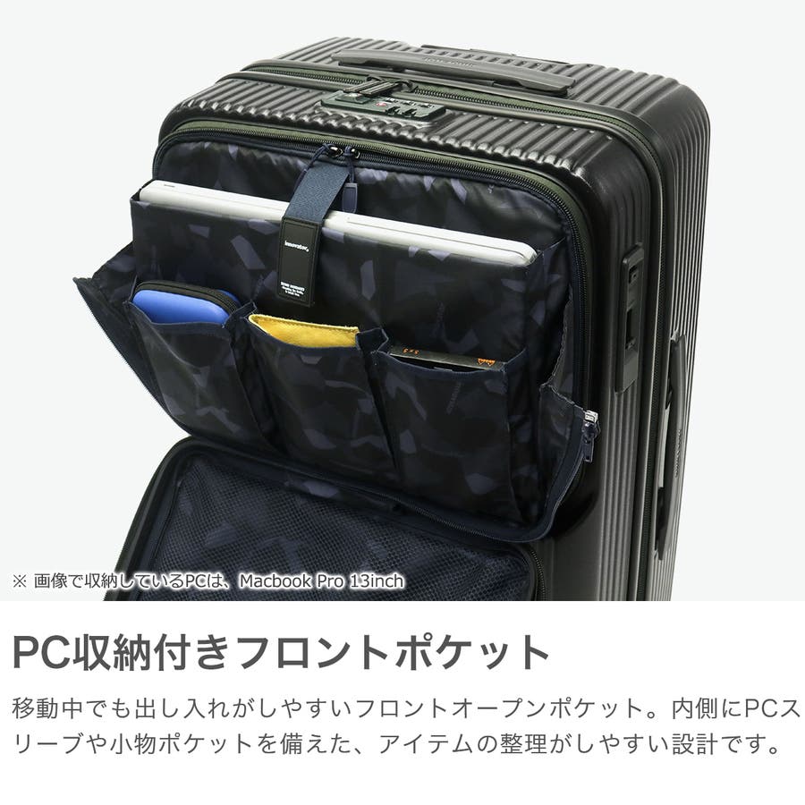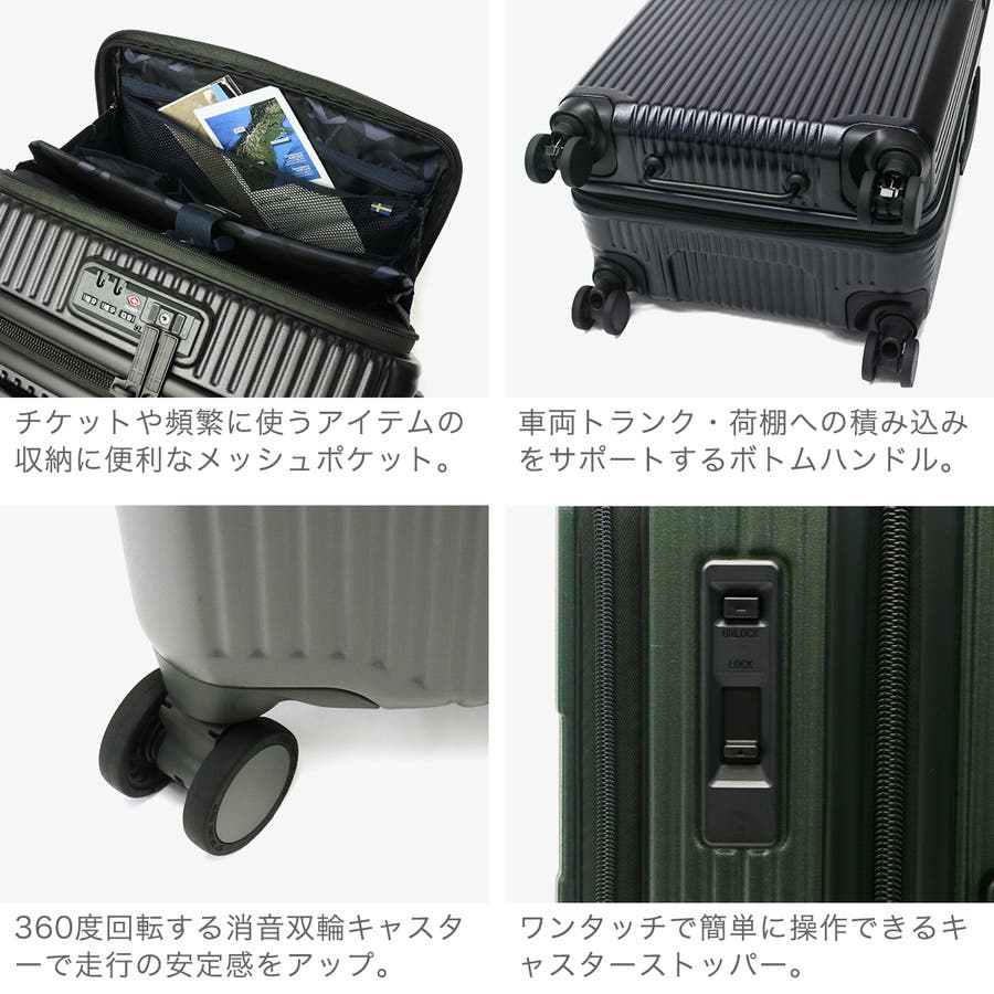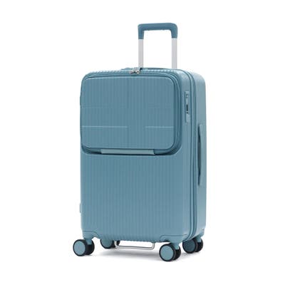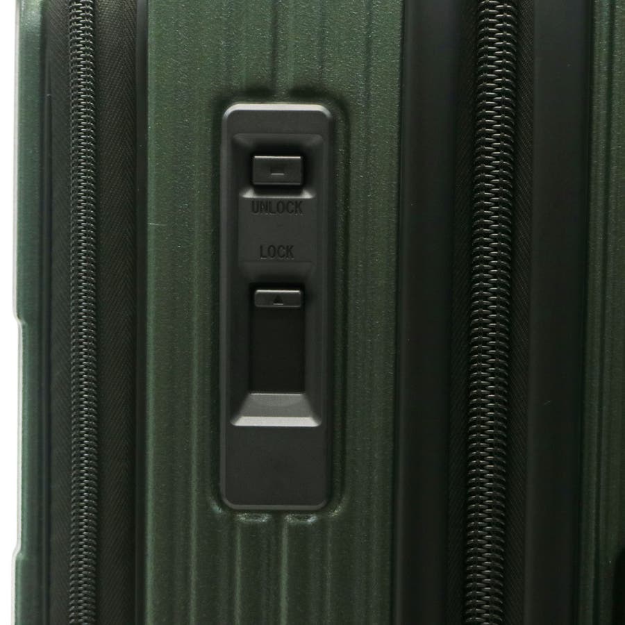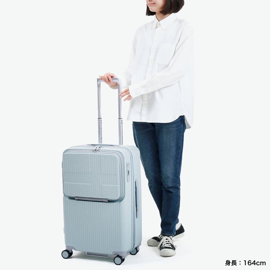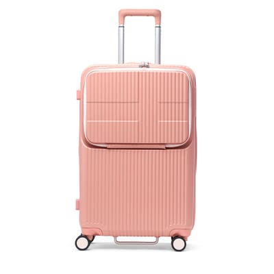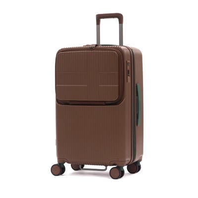 6~7泊程度の旅に適した62L容量のスーツケースです。新幹線やバス移動で役立つトップオープンポケット付き。フロントからメインへアクセスでき、移動中の小物整理に便利。ワンタッチブレーキで揺れを抑え、静音双輪キャスターが快適な走行を実現。軽量で衝撃や摩擦に強いポリカーボネート製で、長旅でも荷物を安心して持ち運べます。強度と機能性を兼ね備え、ストレスのない移動を叶える一台です。