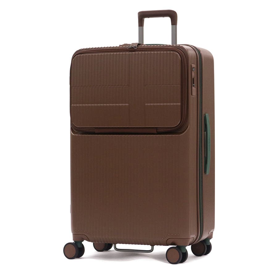9~10泊の長期旅行に最適な92L容量のスーツケースです。新幹線やバス移動で役立つトップオープンポケット付き。フロントからメインへアクセスでき、移動中の小物整理に便利。ワンタッチブレーキで揺れを抑え、静音双輪キャスターが快適な走行を実現。軽量で衝撃や摩擦に強いポリカーボネート製で、長旅でも荷物を安心して持ち運べます。強度と機能性を兼ね備え、ストレスのない移動を叶える一台です。