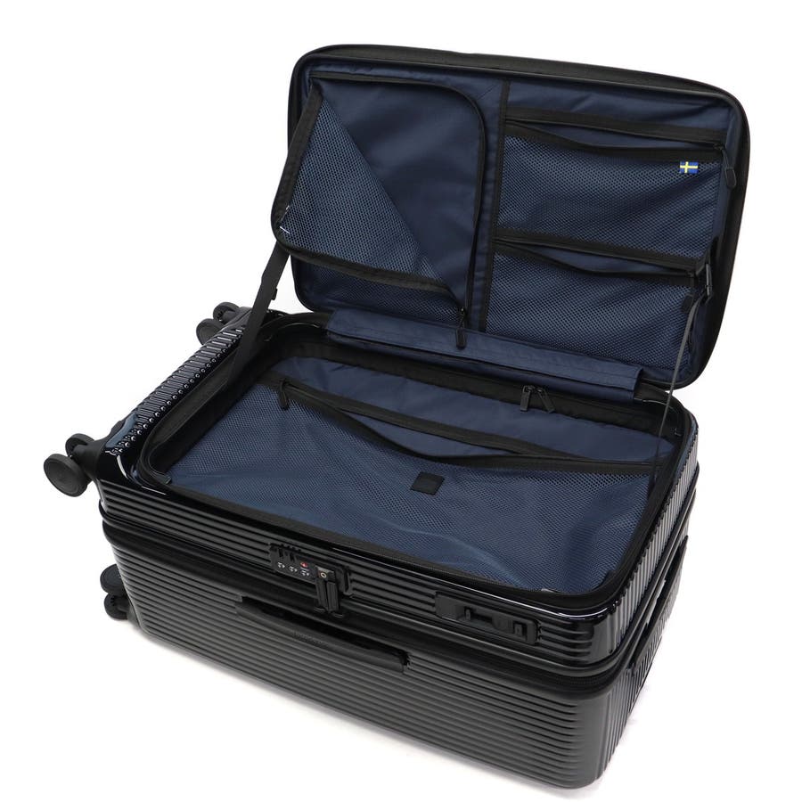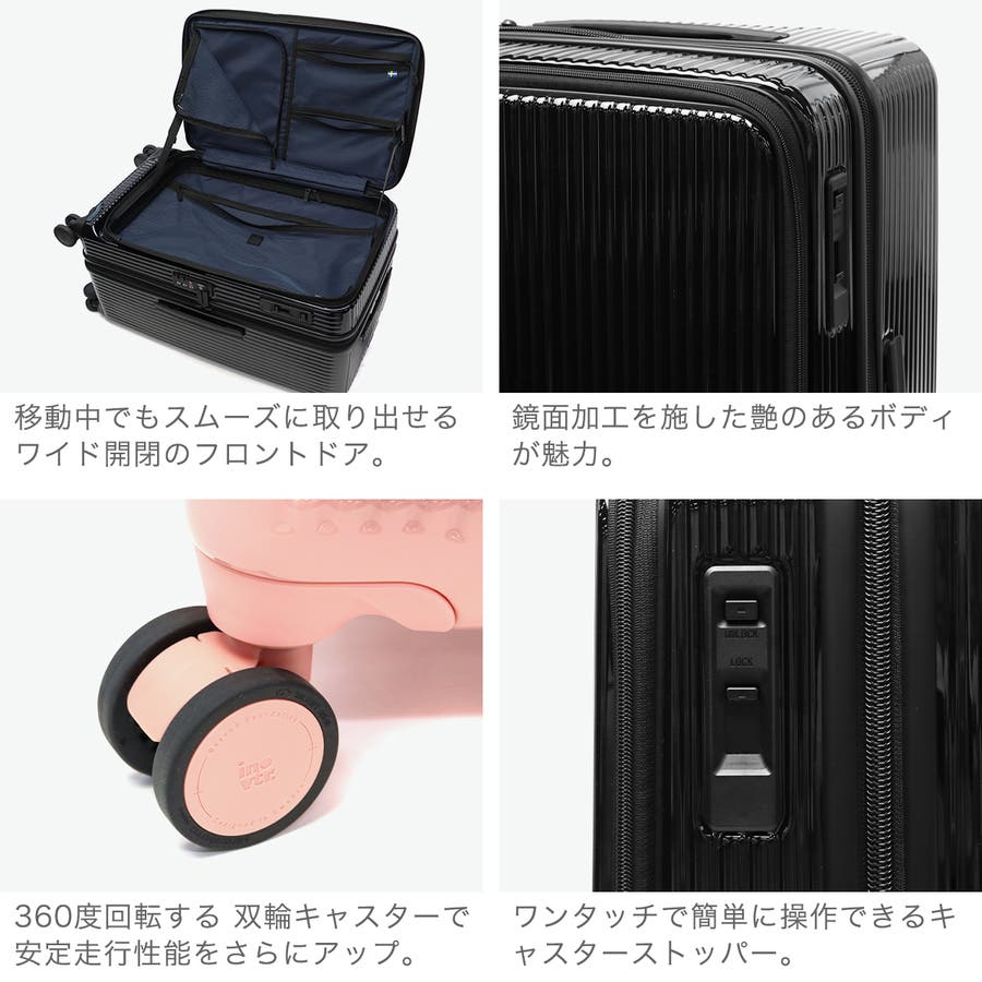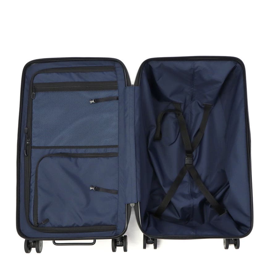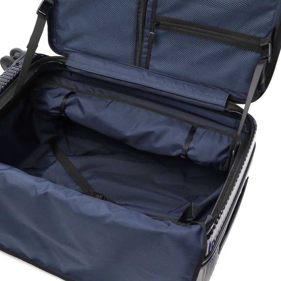 長期出張や旅行の荷物がまとまる、75L容量のキャリーケース。本体表面に鏡面加工を施したデザインがポイントです。前面にはワイドに開くフロントドアポケットがついており、奥にある荷物の取り出しも簡単。他にも、消音双輪キャスターや耐久性に優れたボディ、重い荷物の積み込みをサポートするボトムハンドルなど、旅を快適にする機能を搭載しています。