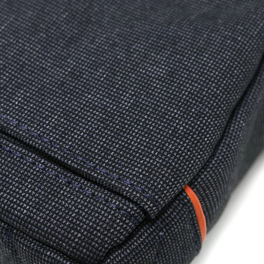本体素材には、ポリエステルシャンブレー生地を使用。表面強度に優れ、シワになりにくいといった特性を持った生地です。異なる色の糸を織り交ぜて織られる杢調の生地は、単色ではなく霜降りの入った温かみある風合いに仕上がっています。また、表撥水加工・裏生地貼り加工を施して、ボリューム感と防水性を高めています。