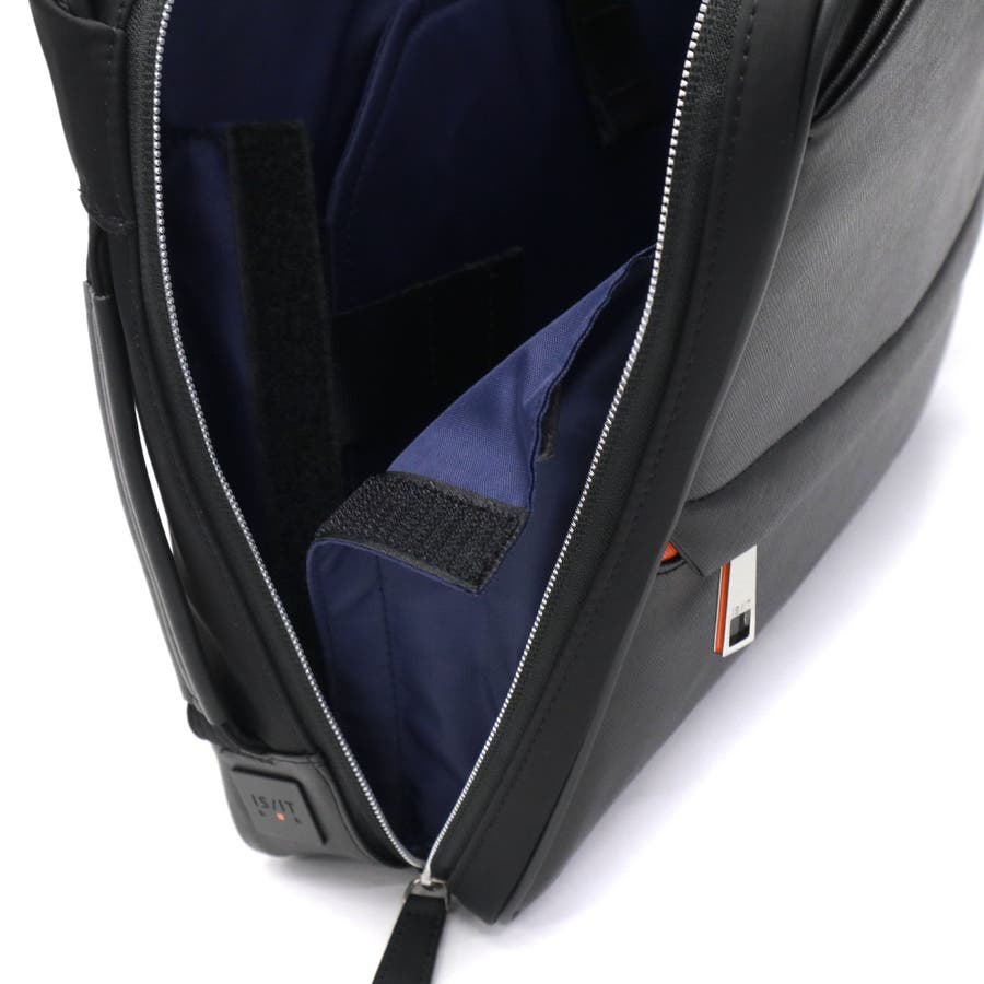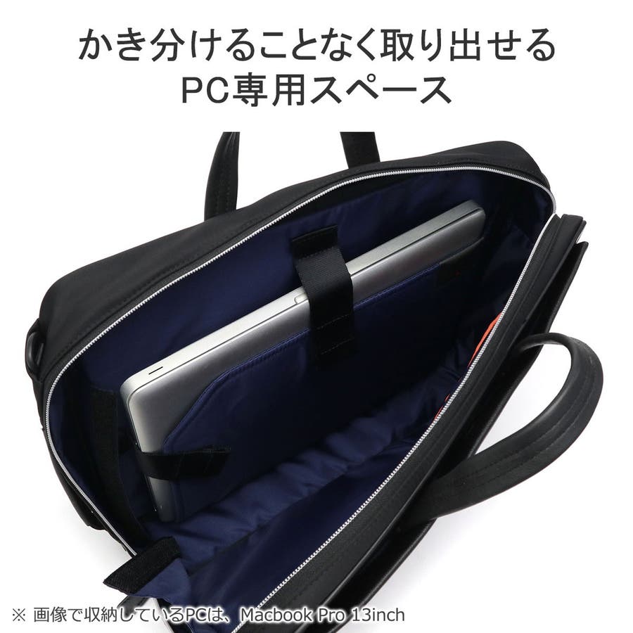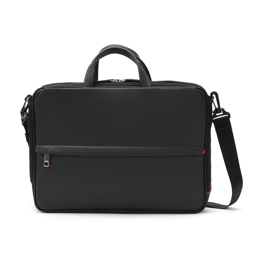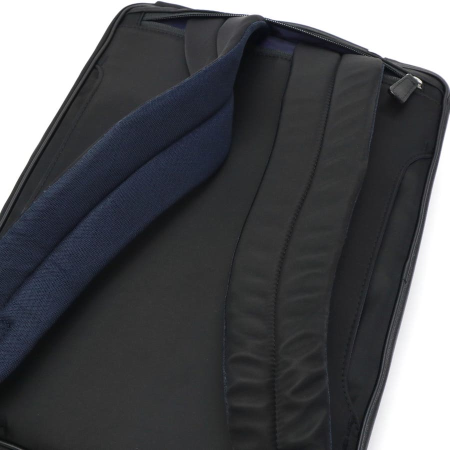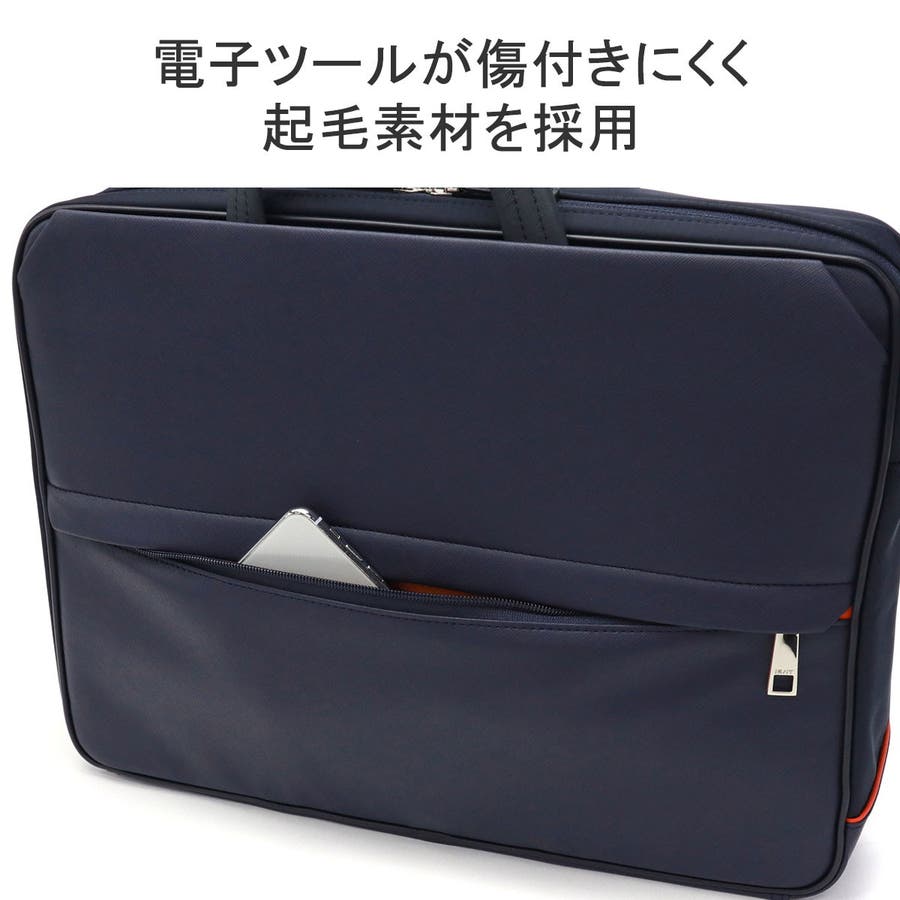 メインコンパートメントは、中身を一目で把握できるシンプルな構造。外側正面のファスナーポケットには、電子ツールが傷付きにくく、見やすいオレンジ色のパイル地を使用しております。また前面にはあおりポケットがあり、ハンドル収納はもちろんすぐに取り出したいアイテムの収納にも便利です。ビジネスシーンに特化した機能が随所に施され、日々の仕事を快適に過ごせます。