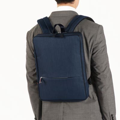 エコ通勤やジャケットスタイルにも合う「ルシェル」をより機能的にアップデートした『ルシェルII』シリーズ。こちらは、A4サイズ対応のビジネスリュック。ファスナーはスプリットコイルを使用し、よりスムースな開閉を実現。撥水加工を施したシャンブレー調の生地が上品な印象で、すっきりと仕上がったスリムデザインとなっています。