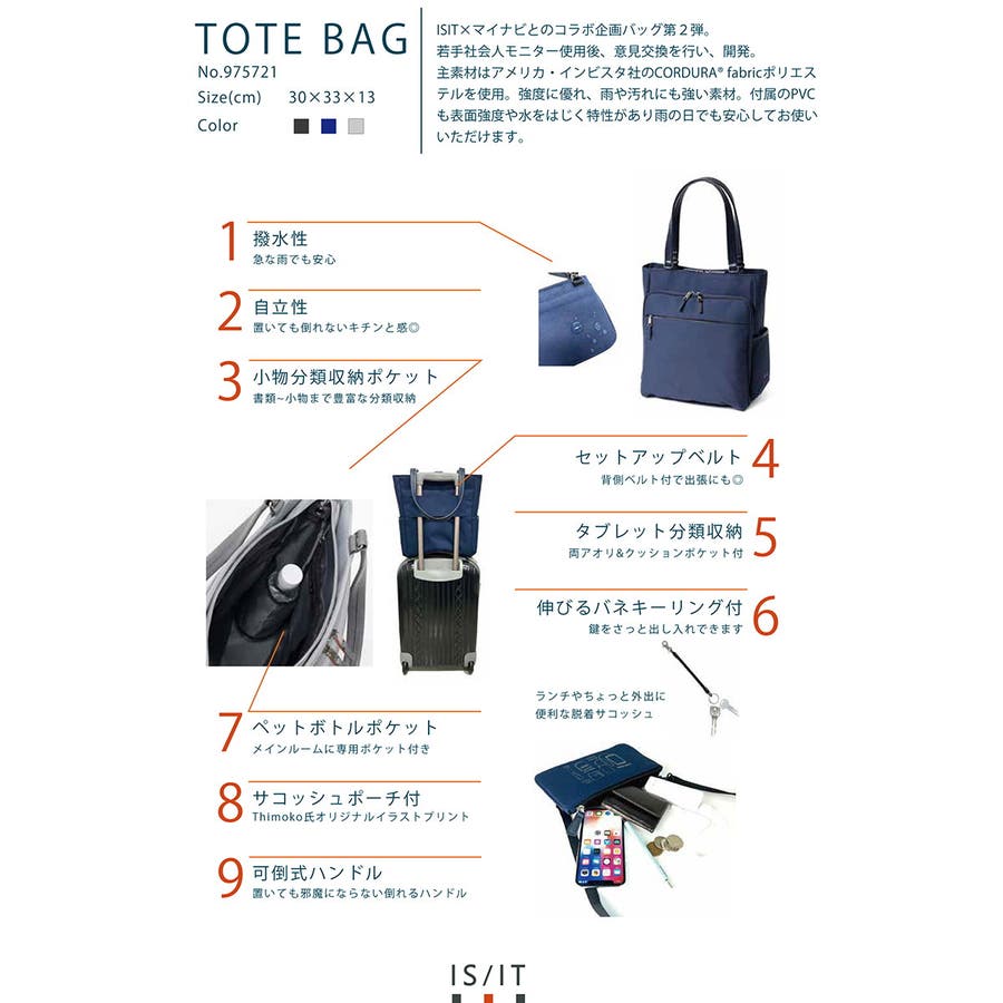 IS/IT×マイナビニュースとのコラボ企画から、ビジネストートが登場しました。マイナビニュースは、若手社会人へのアンケート調査・モニター使用を実施。実際に使う人の声に基づくことで、“理想の仕事バッグ”の実現に成功しました。素材や機能性はもちろん、電車内での持ち方に困らないコンパクトさや、置いても倒れない自立性など、通勤時の些細な悩みや理想に寄り添った仕様に注目です。