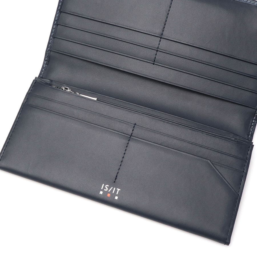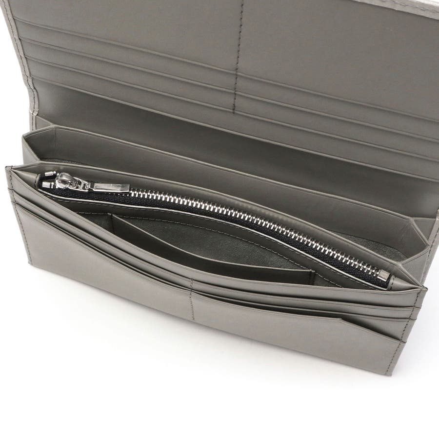 上品なエンボスレザーにエポブローチがポイントになったベーシックな小物シリーズ『ポリマー』のかぶせ長財布。本体には、傷や汚れ、多少の水気にも強いエンボスレザーを使用し、カード入れを多数設けた機能的なつくり。光沢感のある落ち着いた雰囲気で汎用性の高いルックスがポイントとなっています。