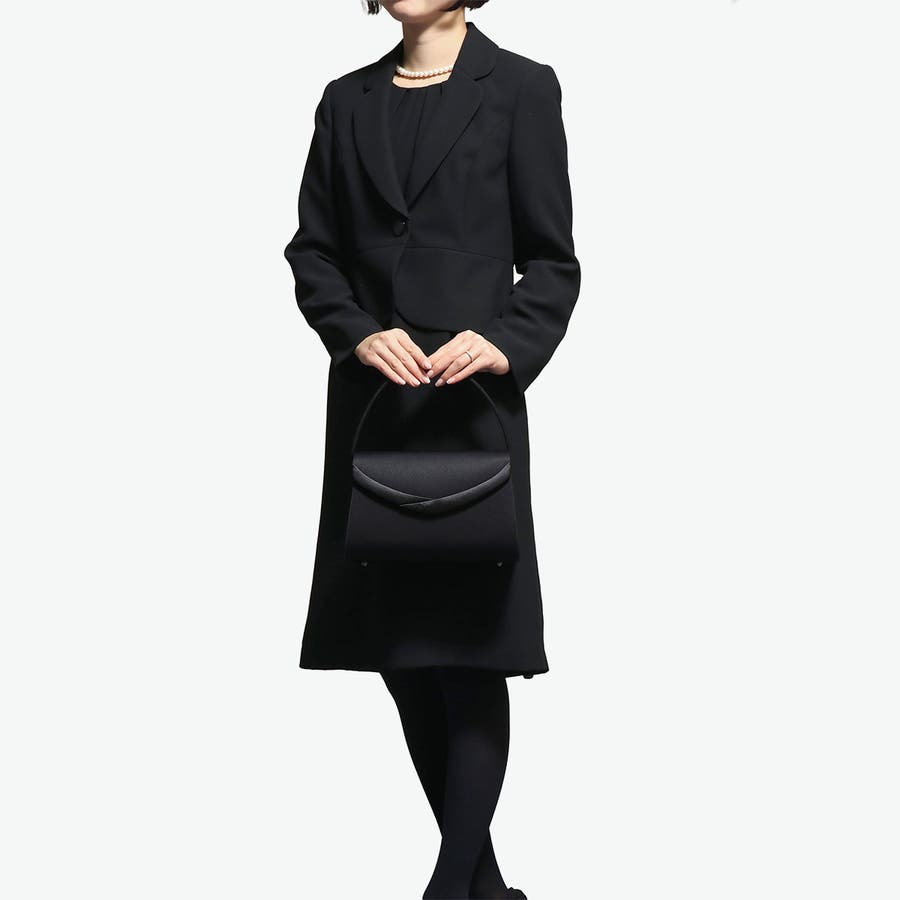 シンプルなフォルムのフォーマルバッグに、袱紗と手提げが付いた3点セット。マナーを守りつつ、ほんの少し人とは違うデザインを求める方にもおすすめです。バッグ表面には、撥水・撥油・抗菌・防カビ効果のある「クリーンコート加工」を施しており、雨の日や長期保管も安心。ファーストフォーマルにもぴったりで、財布や袱紗、ハンカチなどもゆったり収納可能。幅広いフォーマルシーンに対応します。