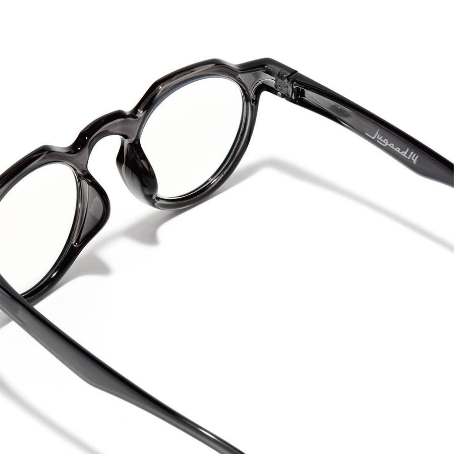 日常に溶け込むアイウェアを目指す『jugaad14/ジュガードフォーティーン』のモデル「HORIZON」。1950~60年代フランスのヴィンテージフレームをベースに再構築したモデルです。こちらのリーディンググラスは、クリアタイプで透け感のあるフレームのとなっています。曲線と直線でデザインされるリムは、太陽が昇る水平線をイメージ。クラシックになり過ぎないようブリッジ幅にはゆとりを持たせ、日本人の目鼻バランスにも相性良いデザインに仕上げています。
