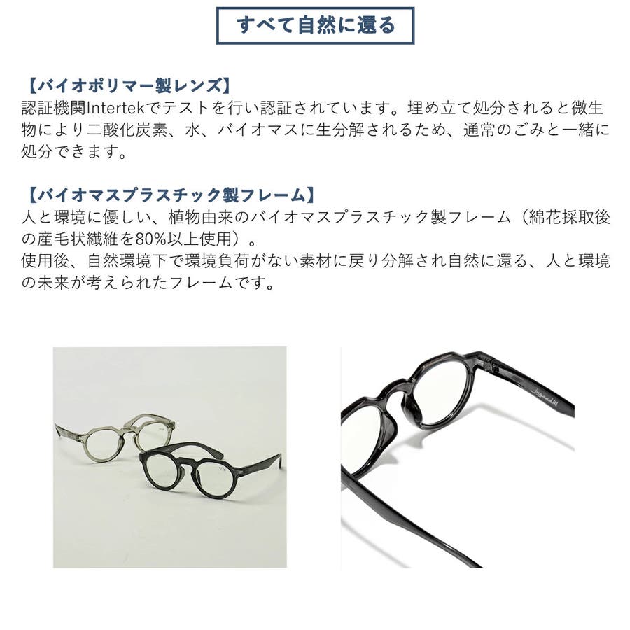 | 素材 | <レンズ> Intertek認証の生分解性バイオポリマー <フレーム> バイオマスプラスチック |