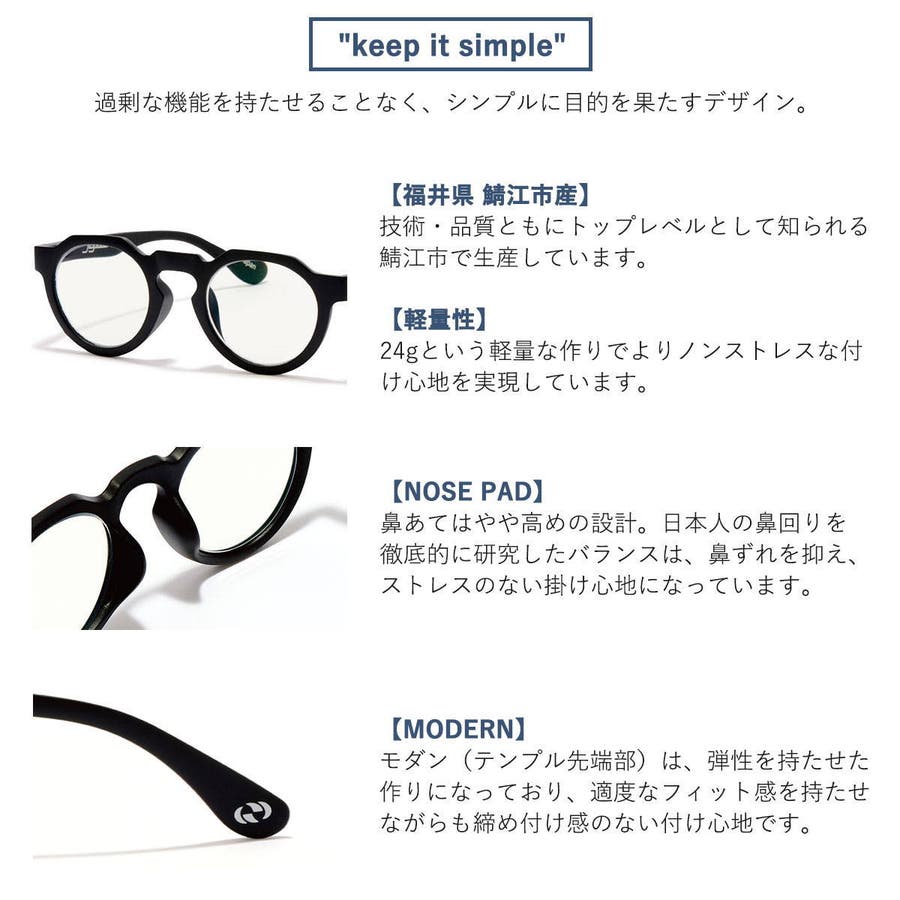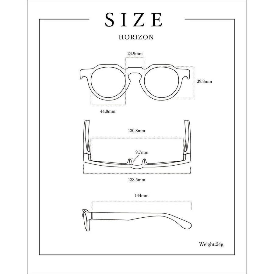 日常に溶け込むアイウェアを目指す『jugaad14/ジュガードフォーティーン』のモデル「HORIZON」。1950~60年代フランスのヴィンテージフレームをベースに再構築したモデルです。こちらのリーディンググラスはマットタイプのフレームのとなっています。曲線と直線でデザインされるリムは、太陽が昇る水平線をイメージ。クラシックになり過ぎないようブリッジ幅にはゆとりを持たせ、日本人の目鼻バランスにも相性良いデザインに仕上げています。