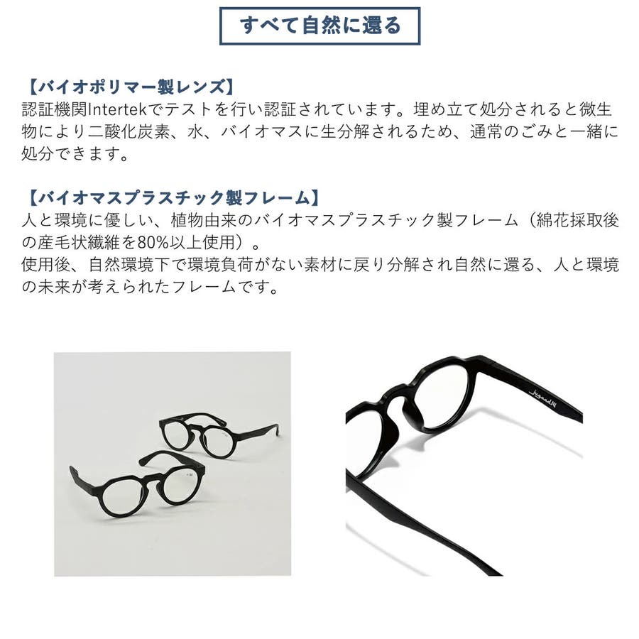 | 素材 | <レンズ> Intertek認証の生分解性バイオポリマー <フレーム> バイオマスプラスチック |