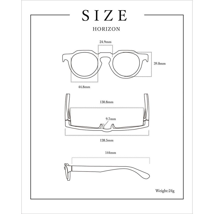 日常に溶け込むアイウェアを目指す『jugaad14/ジュガードフォーティーン』のモデル「HORIZON」。1950~60年代フランスのヴィンテージフレームをベースに再構築したモデルです。こちらはクリアタイプのフレームとなっており、曲線と直線でデザインされるリムは、太陽が昇る水平線をイメージ。クラシックになり過ぎないようブリッジ幅にはゆとりを持たせ、日本人の目鼻バランスにも相性良いデザインに仕上げています。