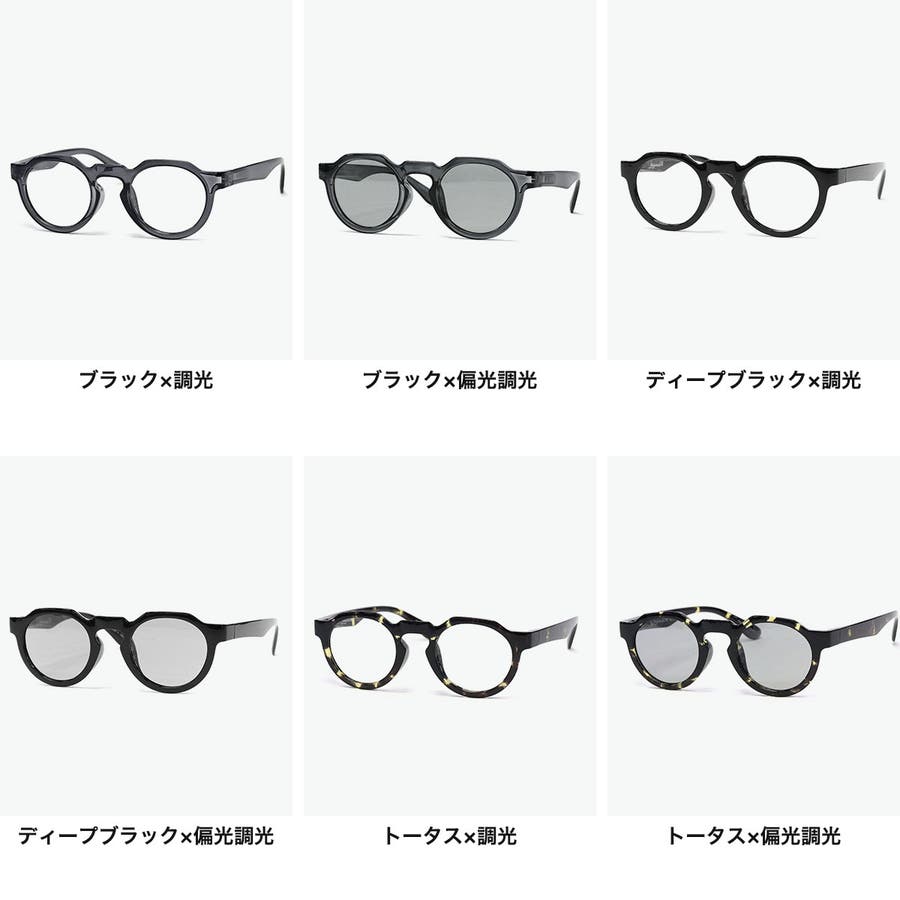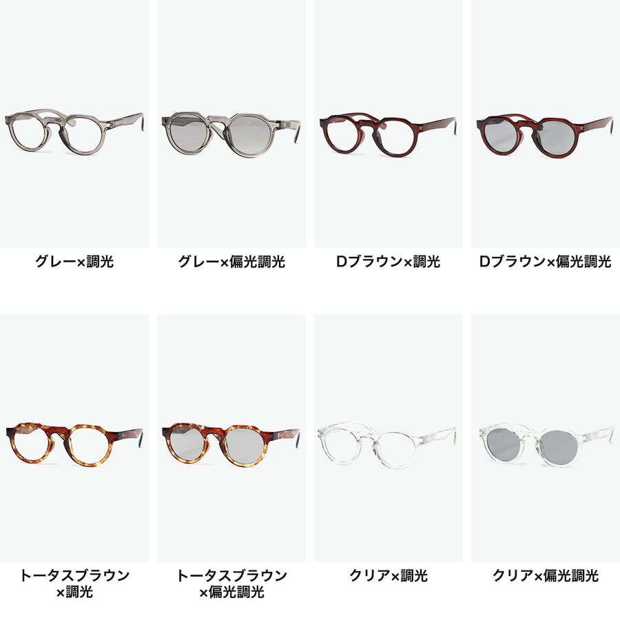 | カラー | ブラック×調光 / ブラック×偏光調光 / トータス×調光 / トータス×偏光調光 / グレー×調光 / グレー×偏光調光 / Dブラウン×調光 / Dブラウン×偏光調光 / クリア×調光 / クリア×偏光調光 / ディープブラック×調光 / ディープブラック×偏光調光 / トータスブラウン×調光 / トータスブラウン×偏光調光 |