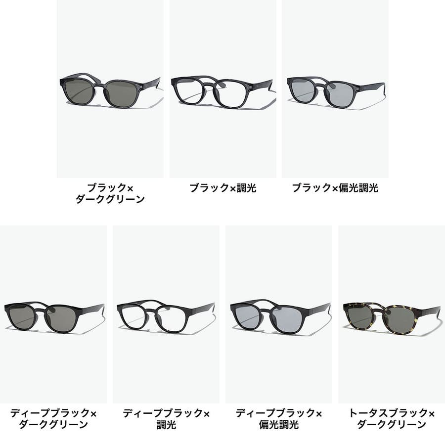 ブラック×ダークグリーン(BLK)、ブラック×調光(BLK5)、ブラック×偏光調光(BLK7)、ディープブラック×ダークグリーン(DBLK)、ディープブラック×調光(DBLK5)、ディープブラック×偏光調光(DBLK7)、トータスブラック×ダークグリーン(MULTI)、トータスブラック×調光(MULTI5)、トータスブラック×偏光調光(MULTI7)、グレー×ダークグリーン(GRY)、グレー×調光(GRY5)、グレー×偏光調光(GRY7)、トータスブラウン×ダークグリーン(2MULTI)、トータスブラウン×調光(2MULTI5)、トータスブラウン×偏光調光(2MULTI7)